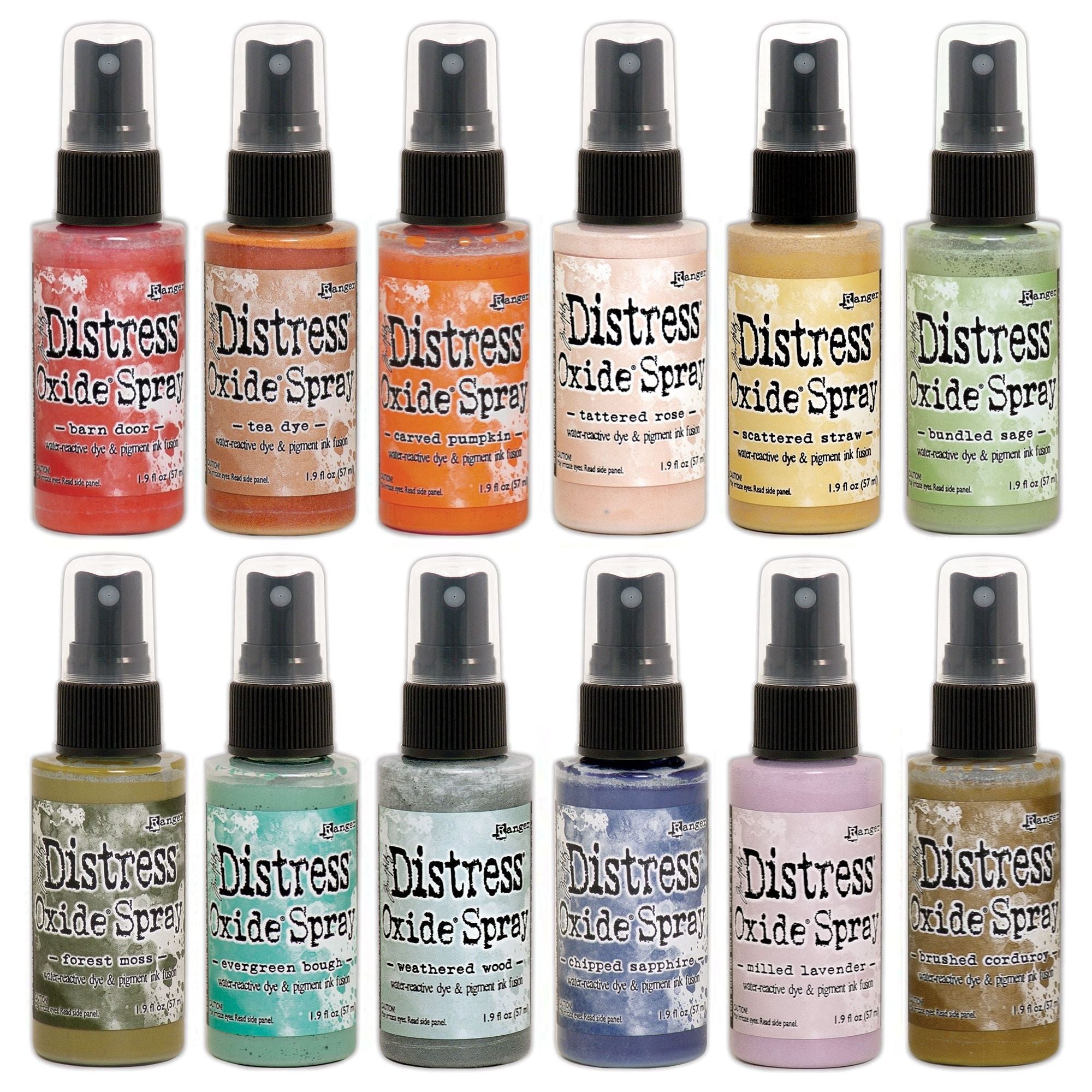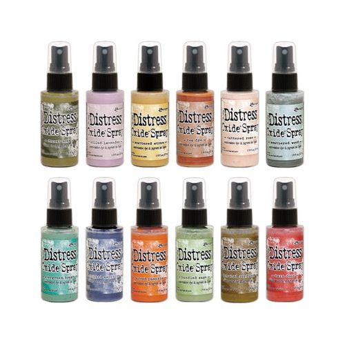 Tim Holtz Distress Oxide Spray is a dye and pigment ink fusion that creates oxidized effects when sprayed with water. Use for quick and easy ink coverage on porous surfaces. Spray through stencils, layer colors, spritz with water and watch the color mix and blend.