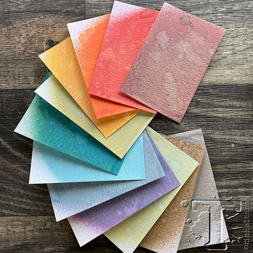 Tim Holtz Distress Oxide Spray is a dye and pigment ink fusion that creates oxidized effects when sprayed with water. Use for quick and easy ink coverage on porous surfaces. Spray through stencils, layer colors, spritz with water and watch the color mix and blend.