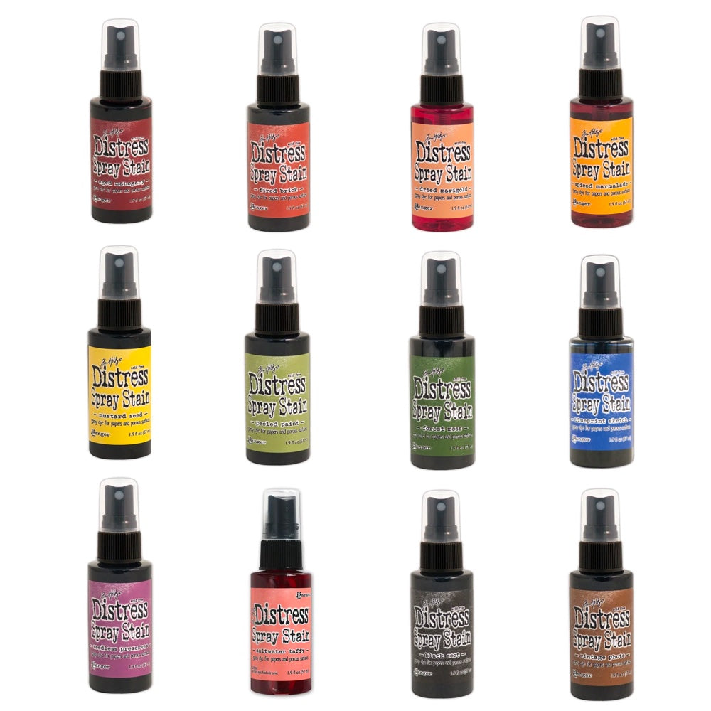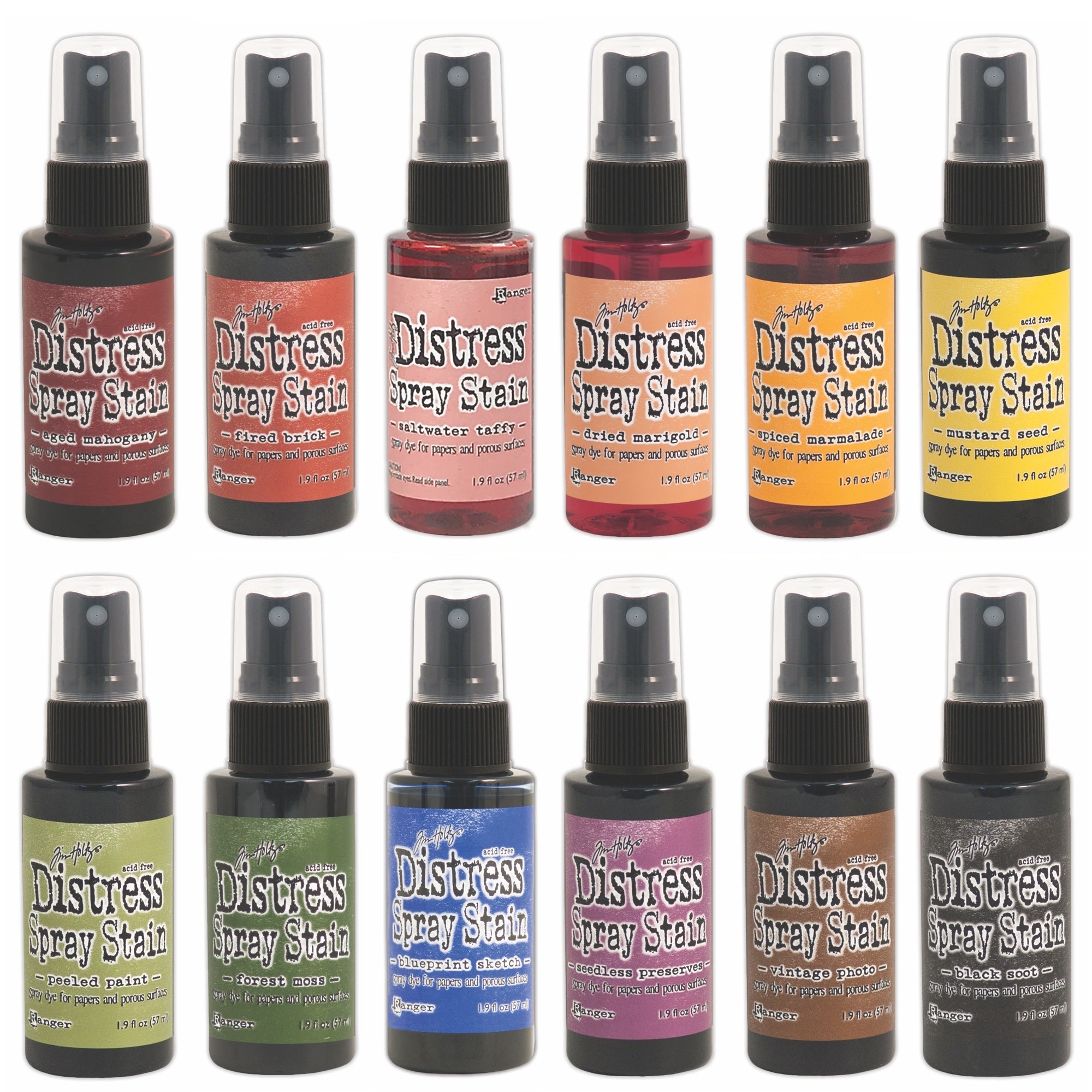 The same beloved formula of Distress Stains is now available in an easy-to-use spray bottle. This quality mist sprayer offers quick and even coverage on porous surfaces - perfect for stencils, layering colors, and blending with water. Each 1.9 fl. oz bottle features a fine mist sprayer and the water-based dye ink is suitable for use on paper and other porous surfaces.