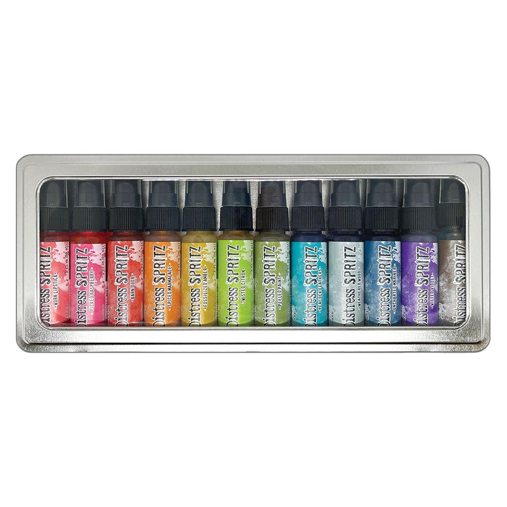 The Tim Holtz Distress® Spritz Storage Tin is the perfect way to organize and transport your Distress Spritz. With the ability to store up to 12 Spritz bottles horizontally, this tin allows for effortless selecting when you're ready to get creative. Its compact design includes a clear window, hinged lid, and friction closure for easy access (spritz sold separately). Tin measures 12.64 x 5.1 x 1.25 inches (321mm x 129.3mm x 31.5mm) for convenient storage.