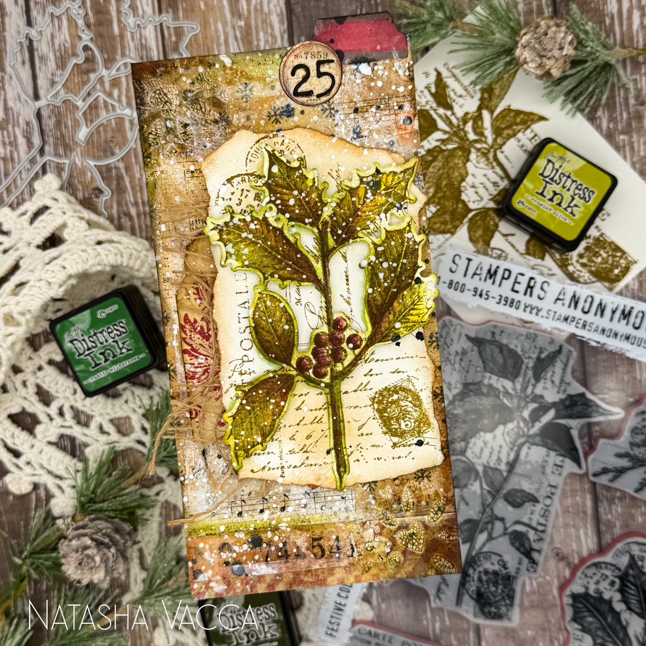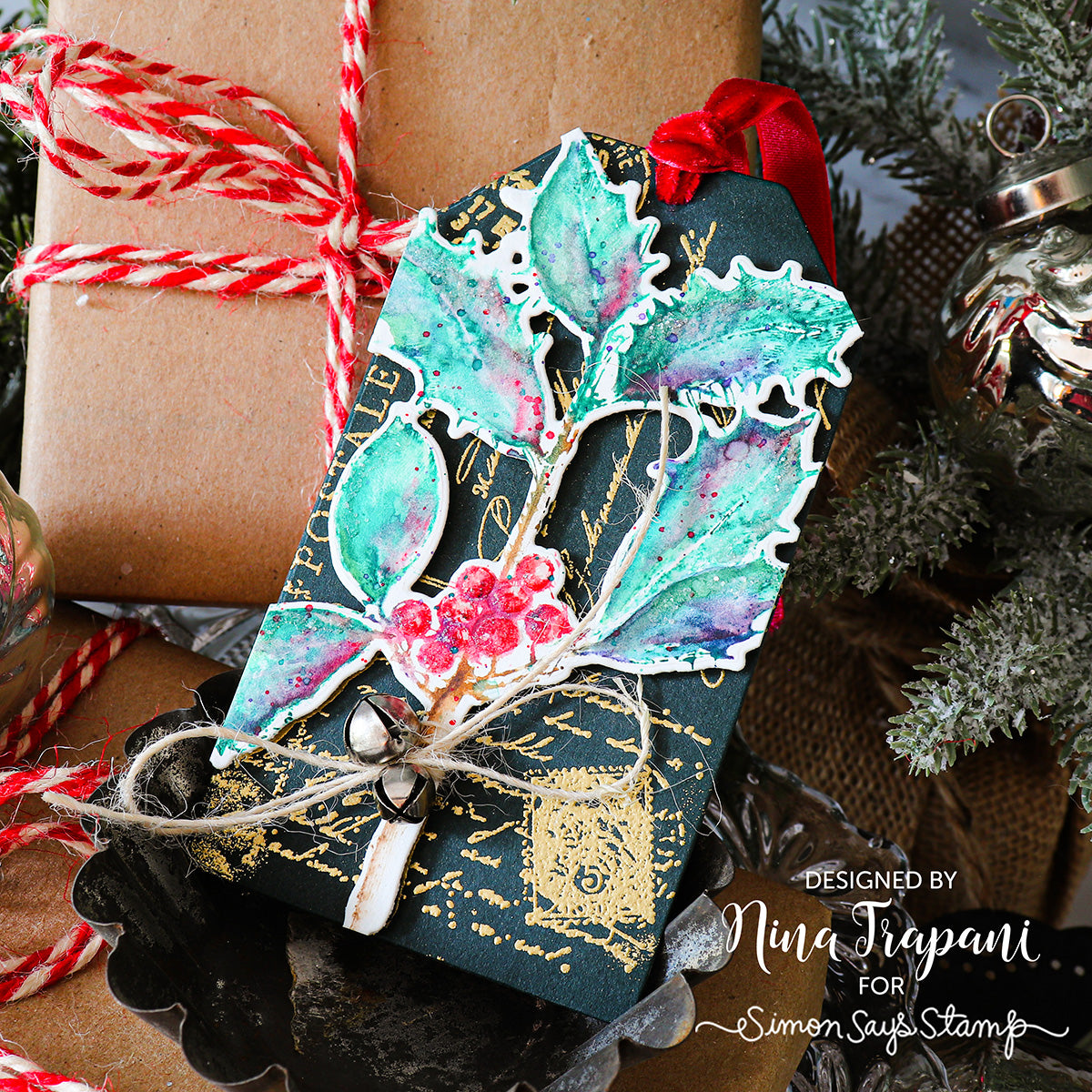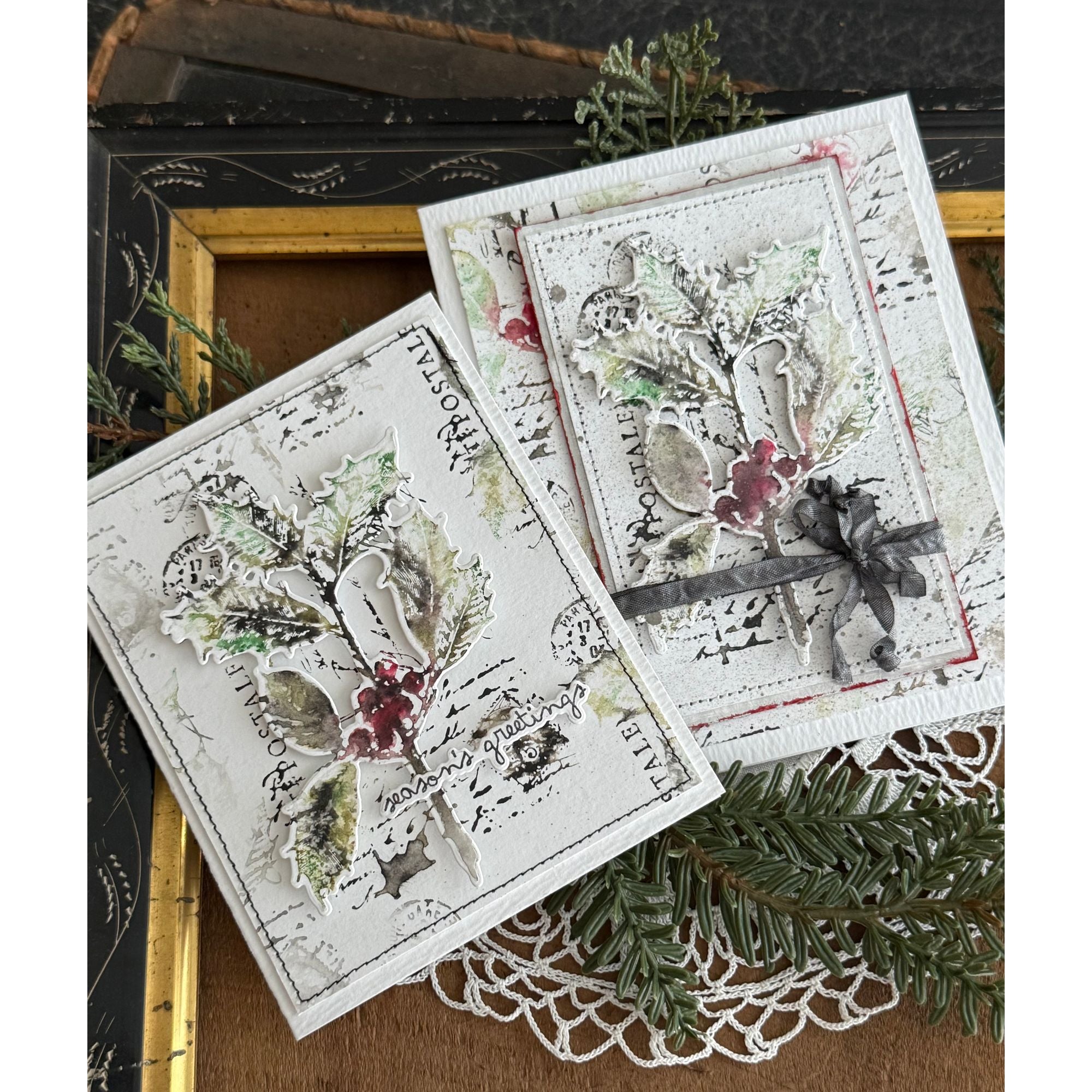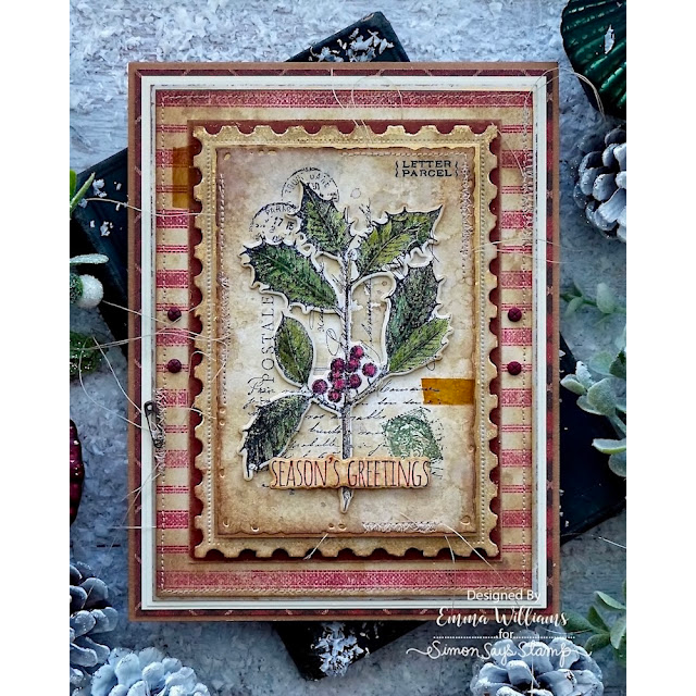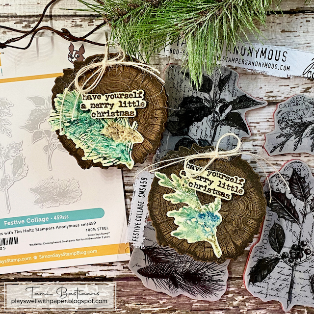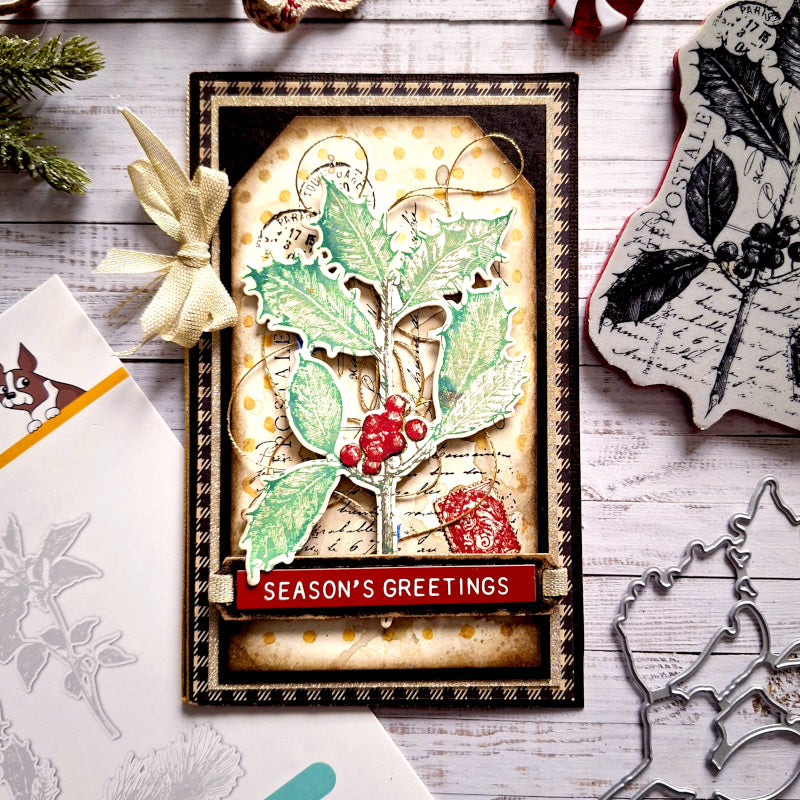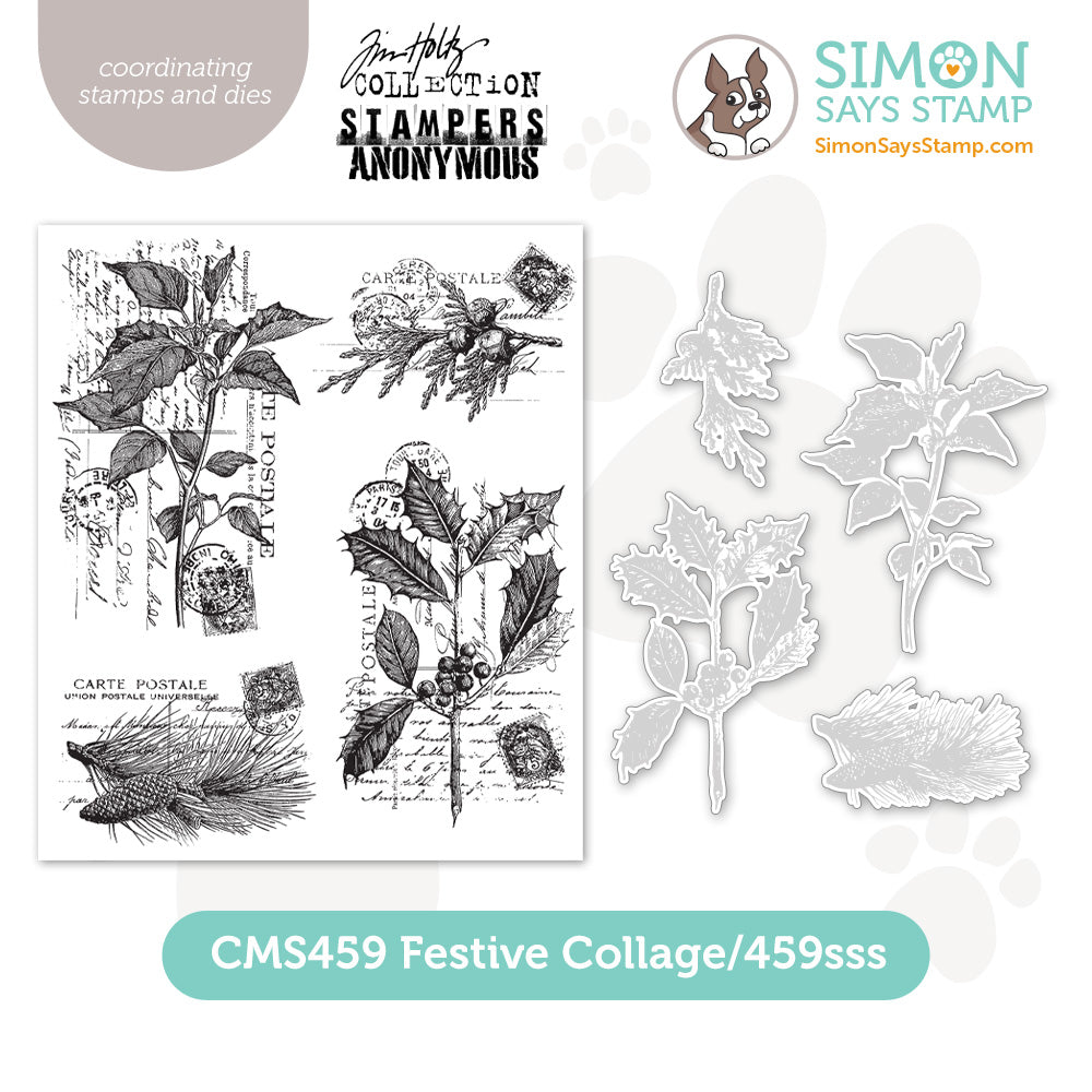 This bundle includes the Tim Holtz Festive Collage Cling Rubber Stamps and the Simon Says Stamp Festive Collage coordinating dies.