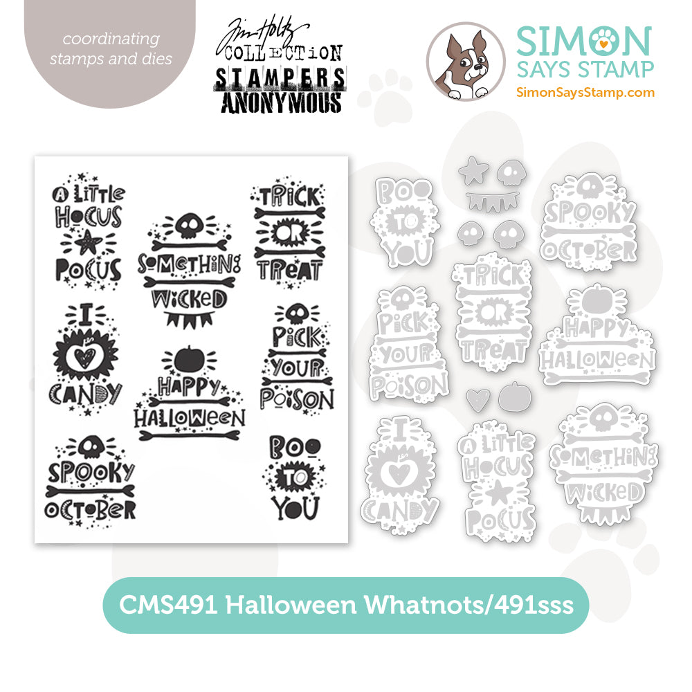 This bundle includes the Tim Holtz Halloween Whatnots Cling Rubber Stamps and the Simon Says Stamp Halloween Whatnots coordinating dies.