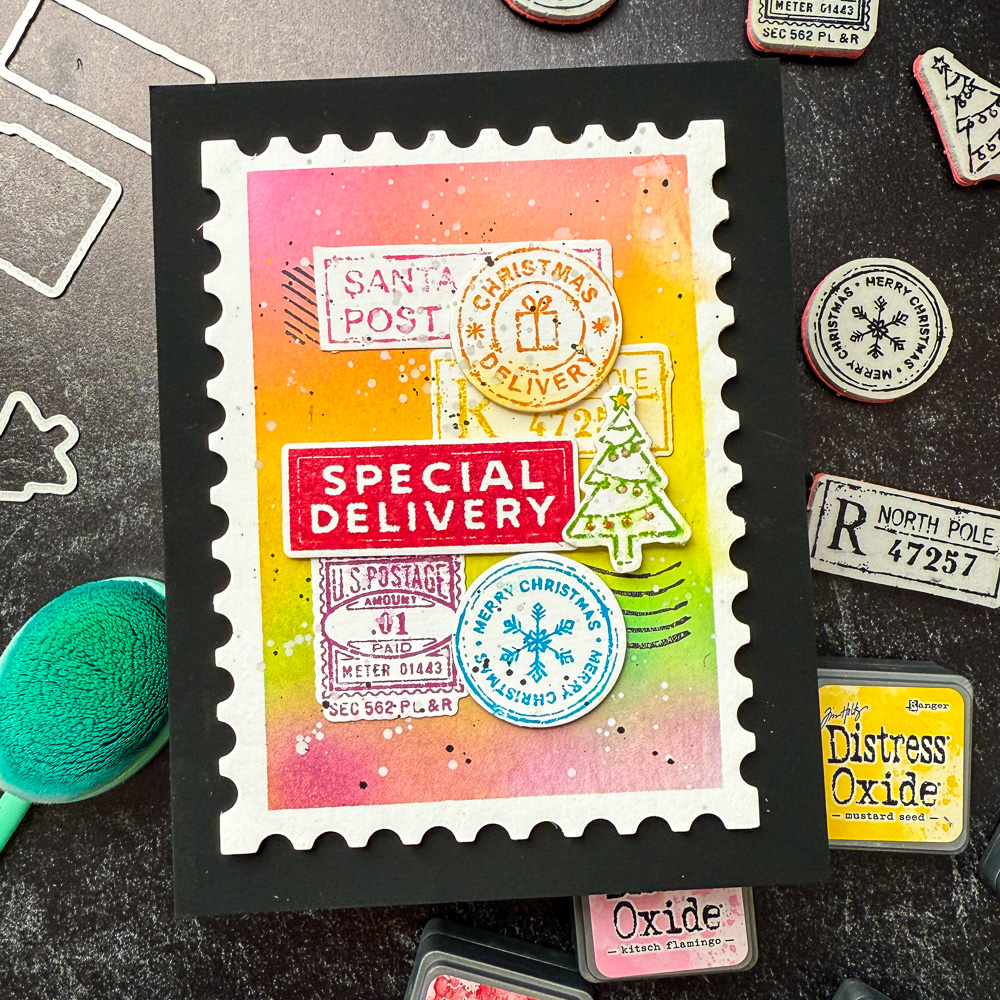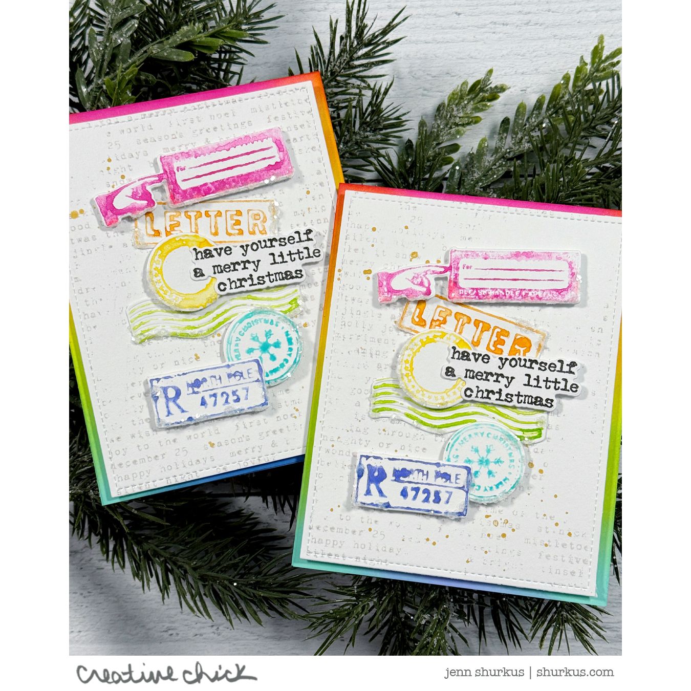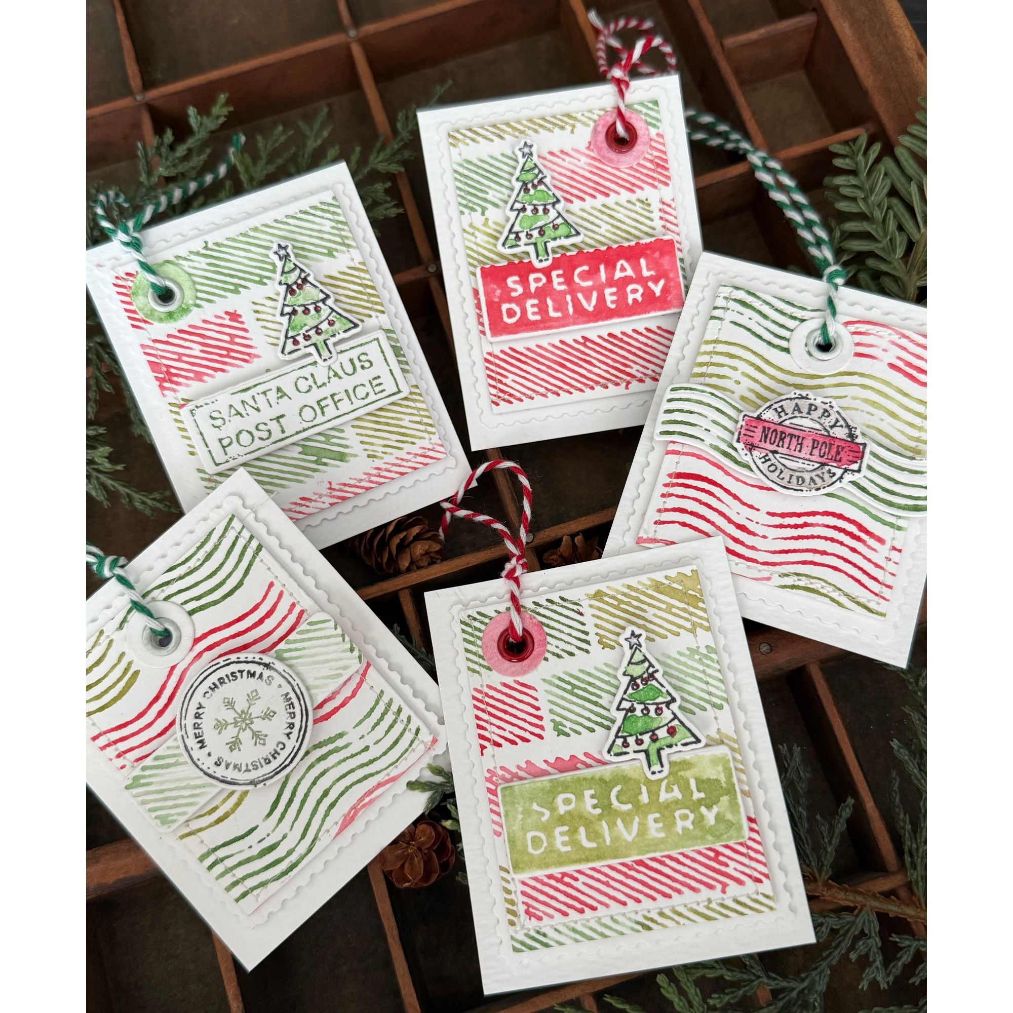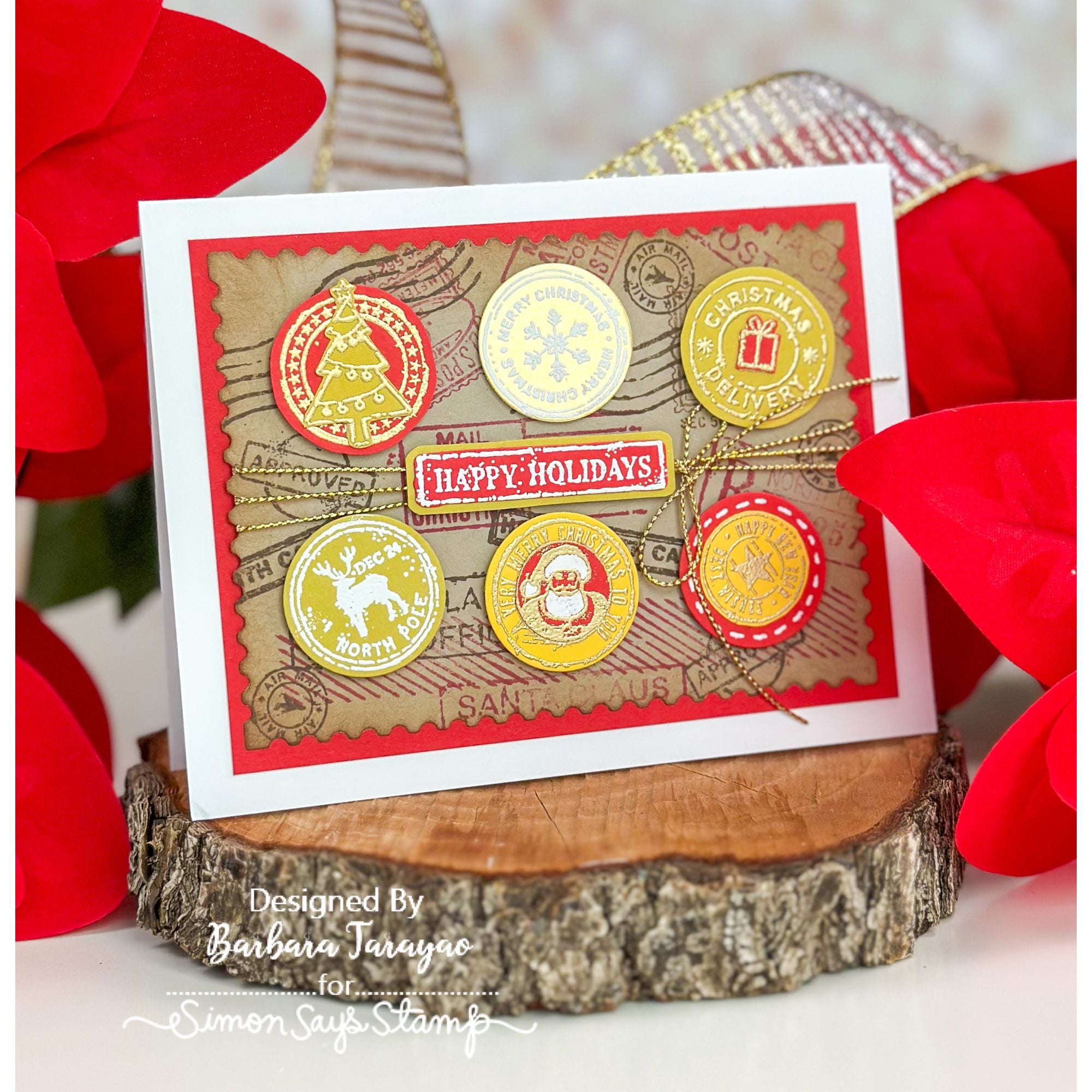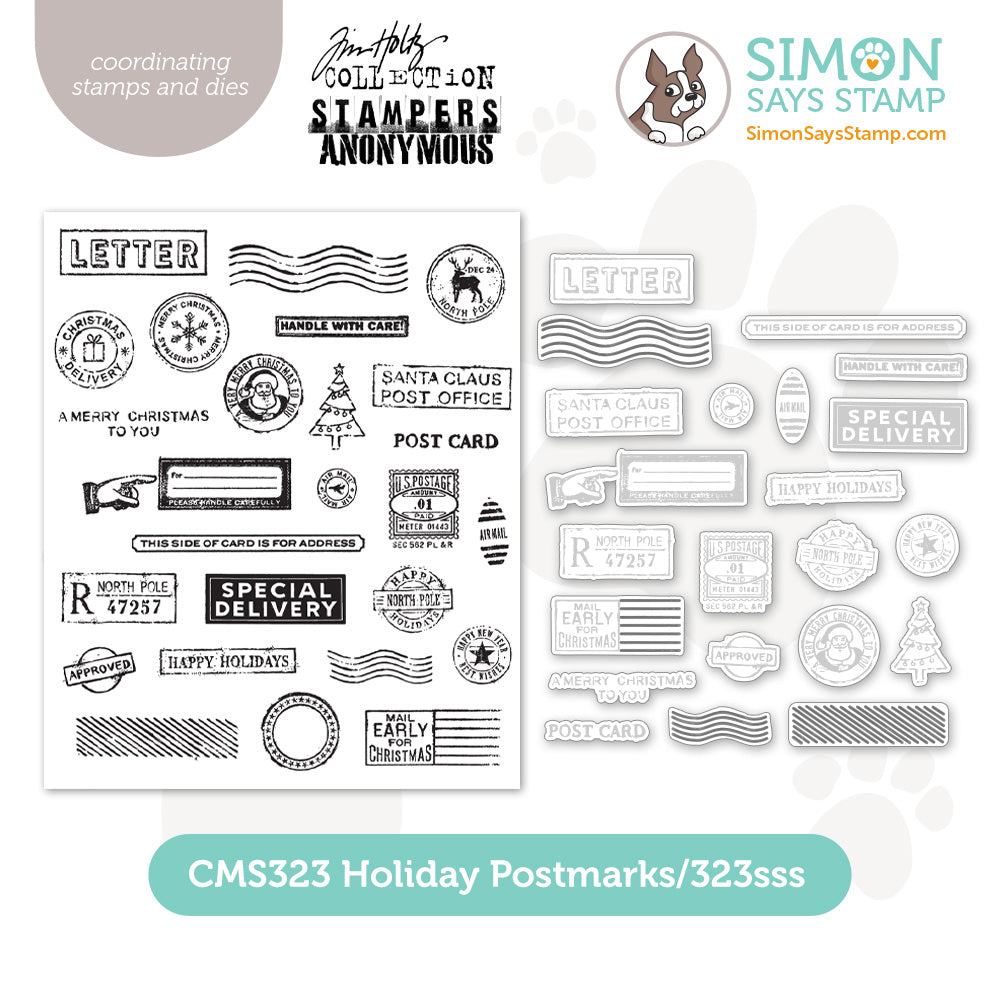 This bundle includes the Tim Holtz Holiday Postmarks Cling Rubber Stamps and the Simon Says Stamp Holiday Postmarks coordinating dies.