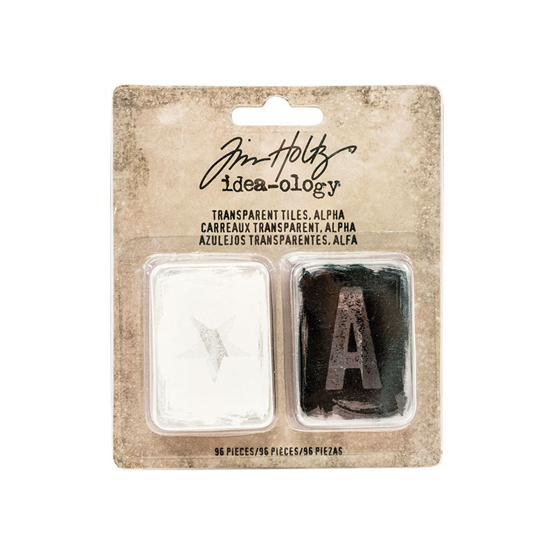 Printed acetate displaying letters, numbers and symbols. 96 pieces (48 black, 48 white) Each piece is approximately 1.25 x 1.75 inches.