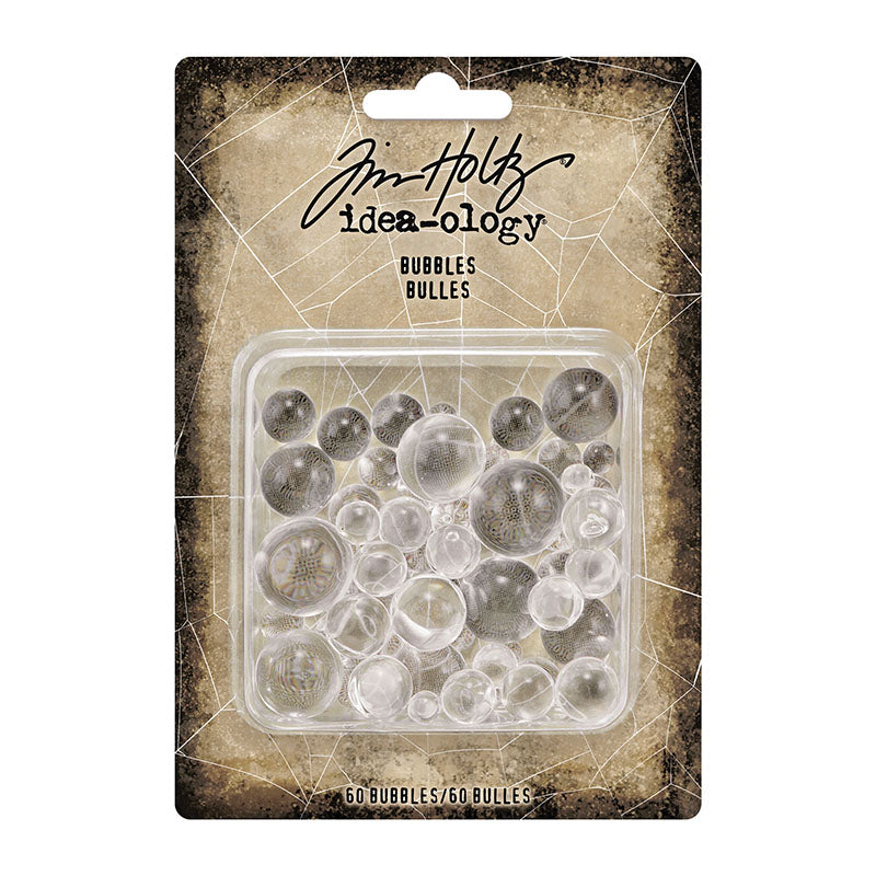 Bubbles and "snow" much more! The possibilities for these cool, clear globes are only limited to your imagination!  Think snow balls, bubbling potion, and everything in between! Bubble bubble, toil and trouble! Tim Holtz Bubbles can be perfect for making potions appear like they are spilling over in your next miniature Halloween scene. Colorize in a spooky shade of green to accent your potion with even more detail.