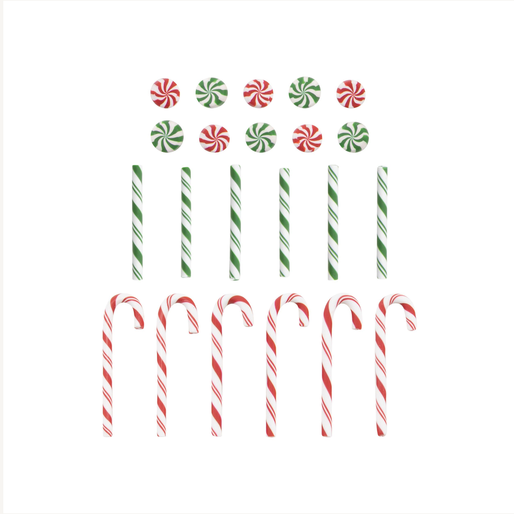 Crafted with attention to detail, the Tim Holtz idea-ology 2023 Christmas Confections bring festive cheer to your creations. Perfect for garlands, wreaths, gifts, dimensional projects, or crafts, these miniature striped candies and candy canes are sure to delight. The round candies measure 0.75 inches in diameter, candy canes stand at 2 inches long, and sticks measure 1.5 inches in height. With 22 resin pieces included in this bundle, you have everything you need to infuse charm and holiday spirit into your projects.