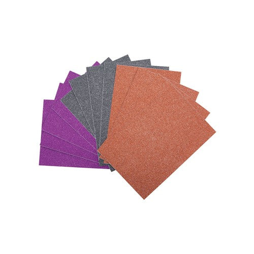 All the sparkle, without the mess! The adhesive-backed sheets in a variety of colors for Halloween - orange, purple, and black.