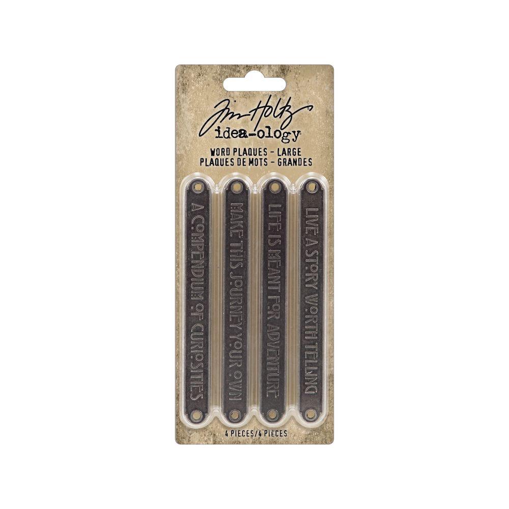 Tim Holtz Word Plaques Large add a touch of personality to your mixed media and DIY crafts. The decorative plaques are made with raised letters for a unique effect to your projects. These inspirational plaques are perfect for any crafter looking for a stylish solution.