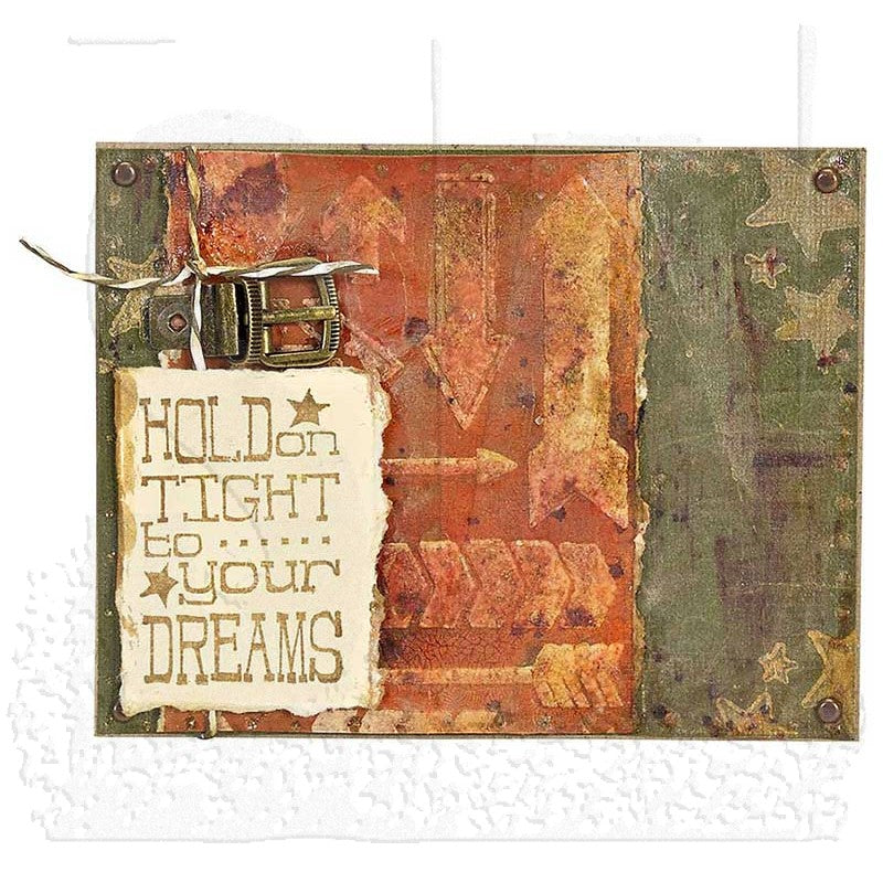 The Tim Holtz Layering Stencil Arrows measures 4.125 x 8.5 inches, curated by the renowned Tim Holtz. This tag-shaped stencil is ideal for mixed media projects and adds versatile, rich texture and layered imagery to your work. Whether you're using inks, paints, sprays, or pastes, it delivers amazing results with a pattern of decorative arrows pointing in all directions. Stencils have a convenient hole at the top for easy storage with the Tim Holtz Cable Binder Ring 3 Pack CBR3, sold separately. Proudly made in the USA by Stamper's Anonymous.