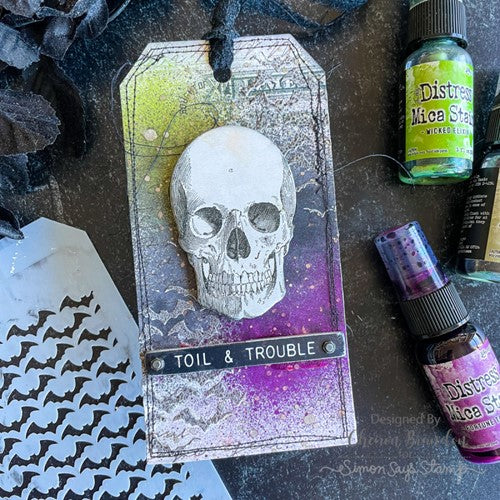 The Tim Holtz Layering Stencil Batground is brimming with batty charm! Featuring a meticulously designed background of flying bats curated by the one and only Tim Holtz, this stencil is perfect for adding a spooky touch to Halloween projects. Measuring approximately 4.125 x 8.5 inches, it can be used with inks, stains, paints, and more to create layered effects. Stencils have a convenient hole at the top for easy storage with the Tim Holtz Cable Binder Ring 3 Pack CBR3, sold separately. Proudly made in the USA by Stampers Anonymous.