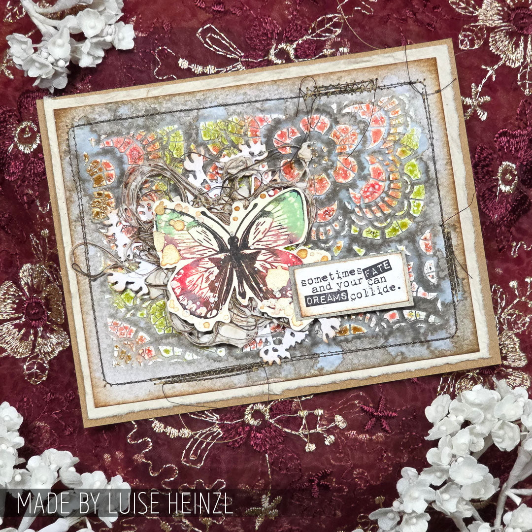 Tim Holtz Layering Stencil Lace measures 4.125 x 8.5 inches and comes in a tag shape. Whether you're using inks, paints, sprays, or pastes, it delivers stunning results with a textured background. This stencil has a pattern of lacy flowers. Stencils have a convenient hole at the top for easy storage with the Tim Holtz Cable Binder Ring 3 Pack CBR3, sold separately. Proudly made in the USA by Stamper's Anonymous.