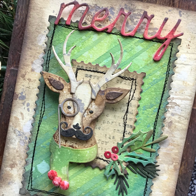 Tim Holtz Layering Stencil Peppermint measures 4.125 x 8.5 inches and comes in a tag shape. Whether you're using inks, paints, sprays, or pastes, it delivers stunning results with a textured background. This stencil has a textured background pattern of diagonal stripes. Stencils have a convenient hole at the top for easy storage with the Tim Holtz Cable Binder Ring 3 Pack CBR3, sold separately. Proudly made in the USA by Stamper's Anonymous.