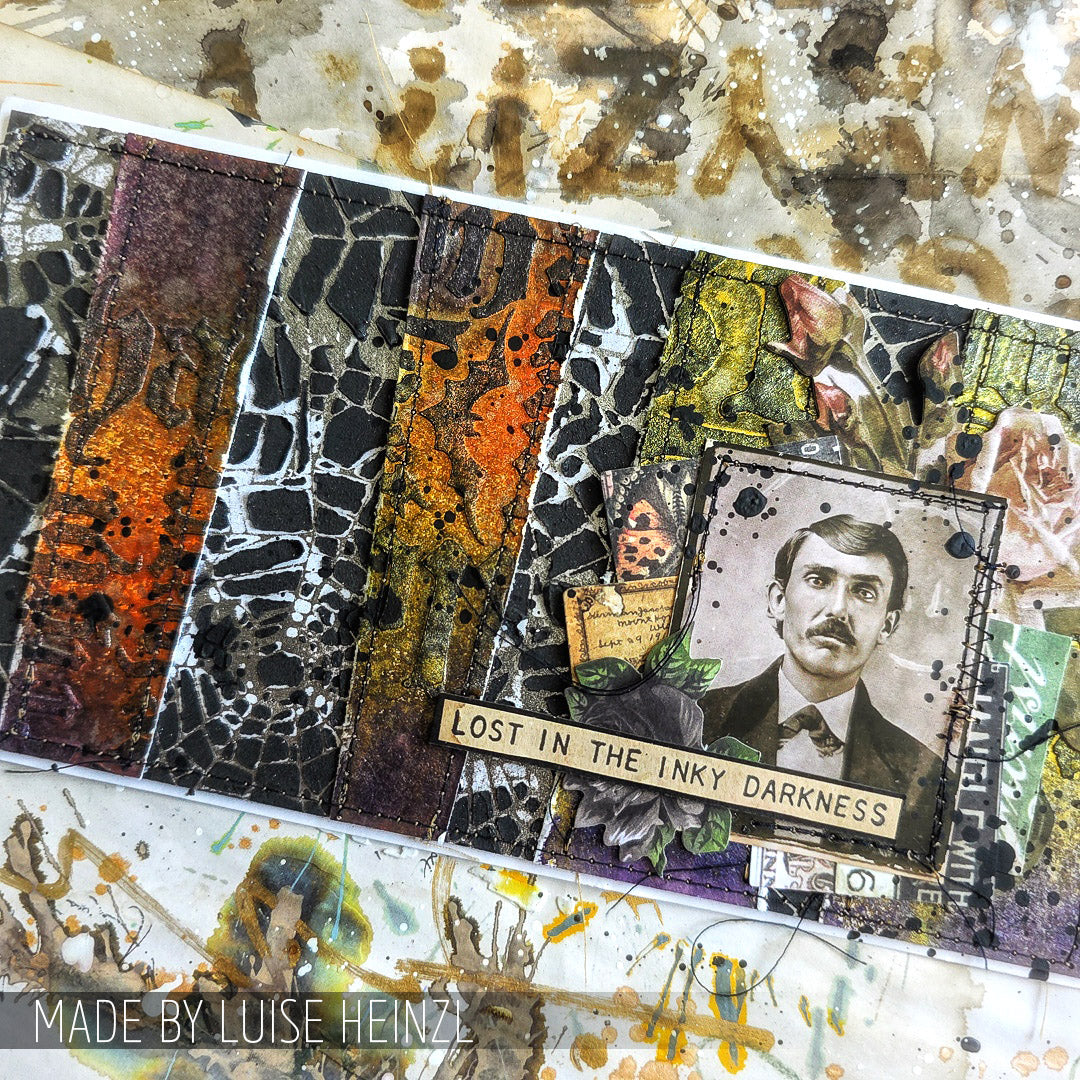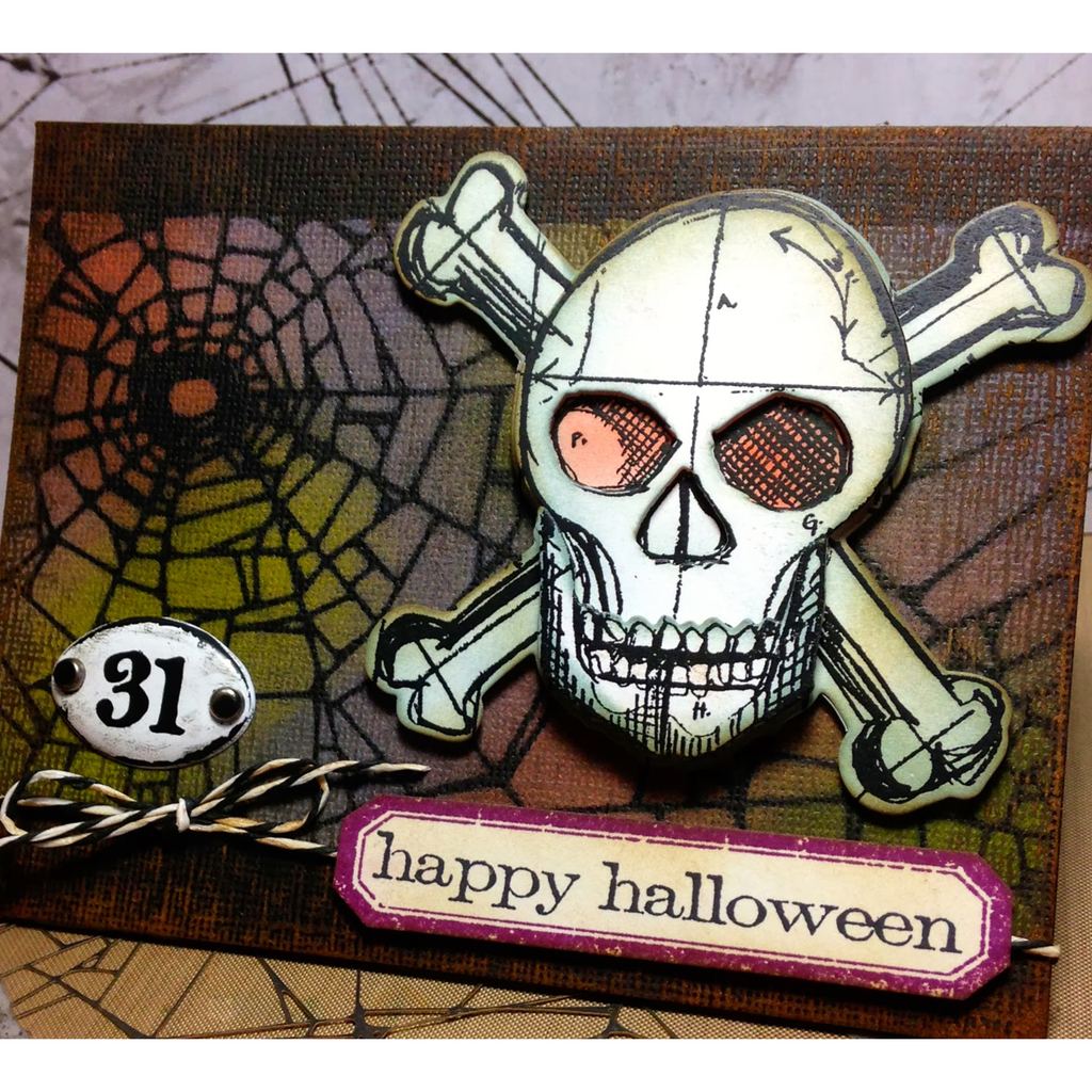 Tim Holtz Layering Stencil Shatter measures 4.125 x 8.5 inches and comes in a tag shape. Whether you're using inks, paints, sprays, or pastes, it delivers stunning results with a textured background. This stencil has a pattern of spidering glass after it's been hit. Great for spooky Halloween backgrounds. Stencils have a convenient hole at the top for easy storage with the Tim Holtz Cable Binder Ring 3 Pack CBR3, sold separately. Proudly made in the USA by Stamper's Anonymous.