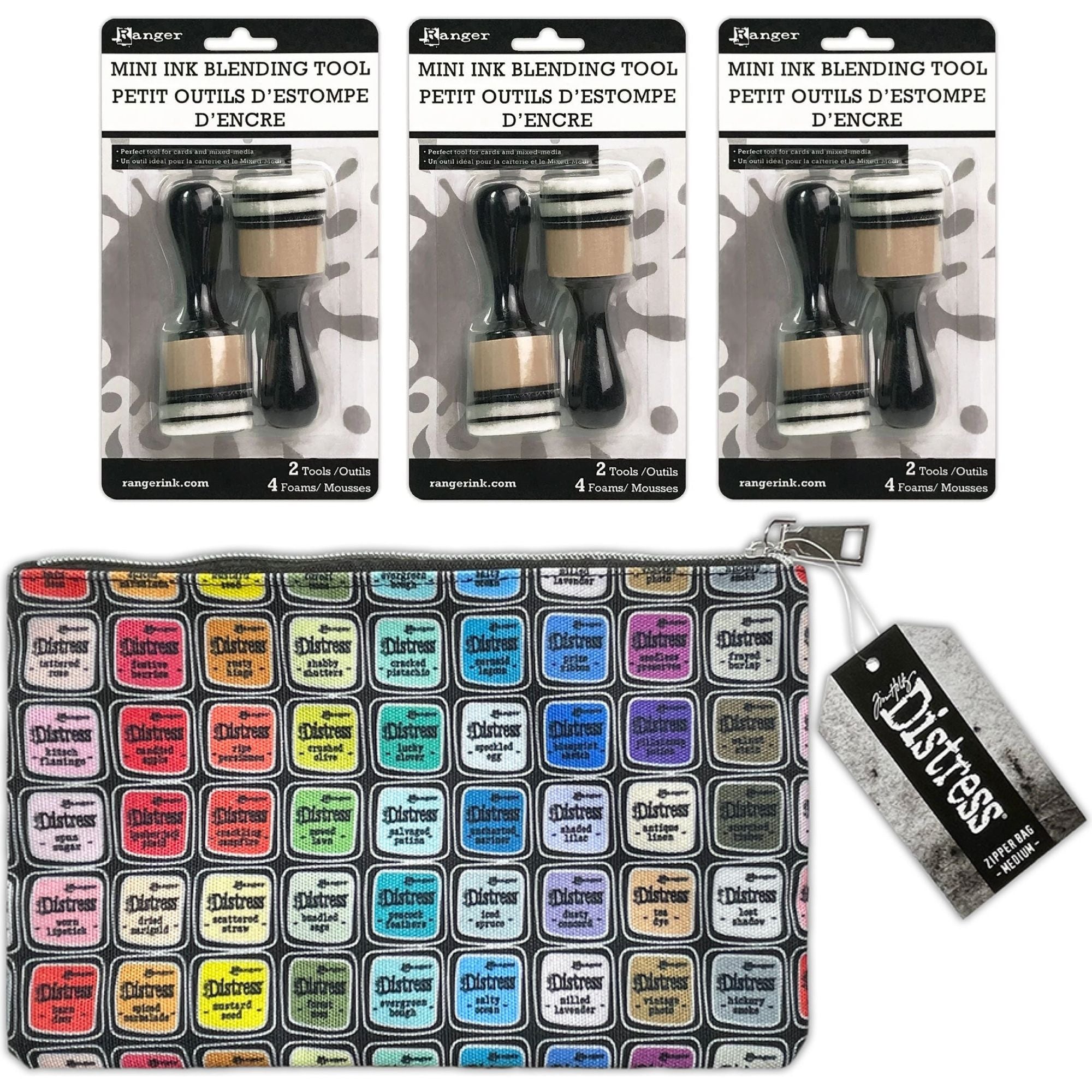 Experience the luxury of Distress with Tim Holtz's Medium 6 x 10 Zipper Bag. In honor of 20 years of excellence, Ranger presents two stylish commemorative bags, adorned with colorful artwork from the complete Distress color palette. These canvas bags feature a fully lined interior and a sleek metal zipper closure, perfect for storing your Distress Mini Ink Tin and Blending Tools. At 6 x 10 inches, this medium bag offers the sophistication and practicality you need for your artistic pursuits. This bundle includes: