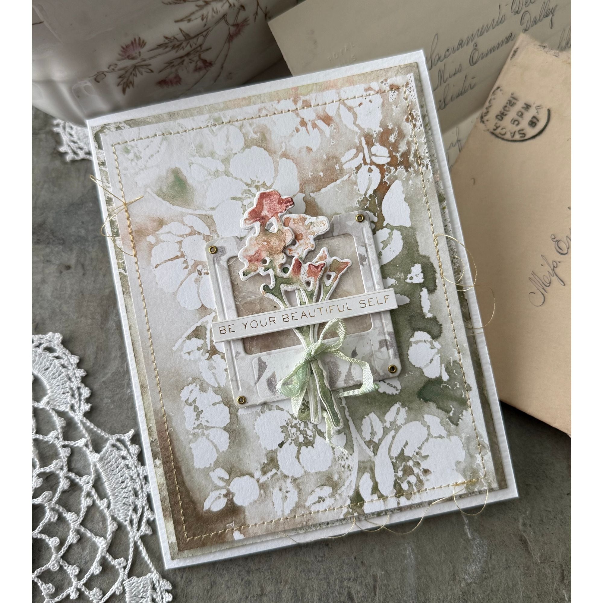 This bundle includes the Tim Holtz Mini Bouquet Cling Rubber Stamps and the Simon Says Stamp Mini Bouquet Outlines and Mini Bouquet Silhouettes coordinating dies.