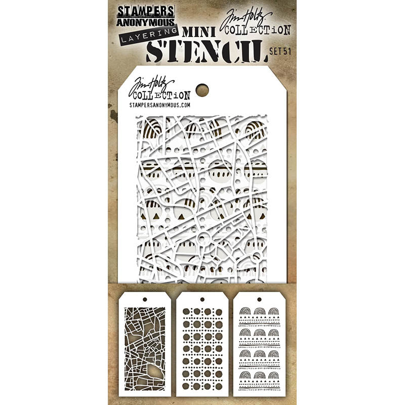 The Tim Holtz Mini Layering Stencils offer scaled-down versions of Tim’s original designs, perfect for adding detailed texture and layered effects to smaller areas of your projects. Ideal for use with inks, paints, and stains, these mini stencils allow more of your background to show while still delivering bold, exciting elements. Made in the USA by Stampers Anonymous