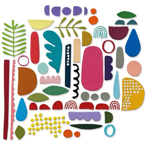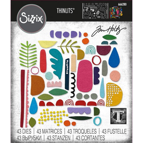 Designed to encourage true originality and innovation, these shapes can be layered, manipulated and rearranged in countless configurations, to create astonishing and artistic outcomes. Thinlits create dazzling detailed shapes for more creative cardmaking and papercrafting projects. These wafer-thin chemical-etched die sets are designed to cut, emboss or stencil a single sheet of cardstock, paper, metallic foil or vellum. Use them for enhanced intricacy and to add a special touch of inspiration to all your projects. Compatible with the Big Shot, Vagabond and most cutting machines. This set includes a handy storage envelope. For easy identification, trim off the packaging front flap, keep and slip it into the envelope. Curated by Tim Holtz. Includes 43 dies. Die cuts are approximately 0.25 x 3.25 to 0.25 x 0.25 inches.