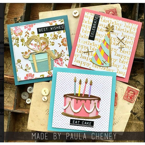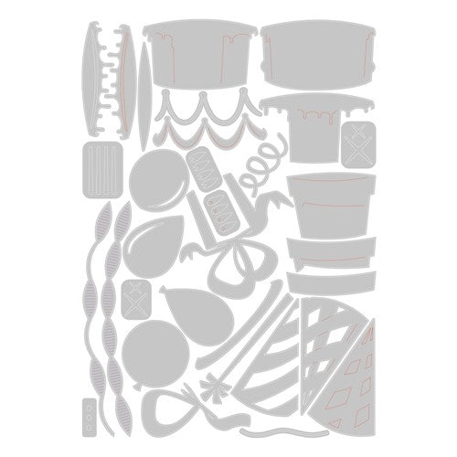 Celebrate in style! From anniversaries and birthdays to Christmas and baby showers, these designs have got you covered! With layered, Colorize technology, each celebratory shape is sure to bring that party spirit to any papercraft project! Colorize allows you to create realistic dimensions using drop shadows and highlights for amazing detail. From papercrafters to mixed-media artists, Colorize is a rewarding challenge for all to bring animated characters and elements to life. Thinlits create dazzling detailed shapes for more creative cardmaking and papercrafting projects. These wafer-thin chemical-etched die sets are designed to cut, emboss or stencil a single sheet of cardstock, paper, metallic foil or vellum. Use them for enhanced intricacy and to add a special touch of inspiration to all your projects. Compatible with the Big Shot, Vagabond and most cutting machines. This set includes a handy storage envelope. For easy identification, trim off the packaging front flap, keep and slip it into the envelope. Curated by Tim Holtz. Includes 32 dies. Die cuts are approximately 0.625 x 4.75 to 1.75 x 0.125 inches.