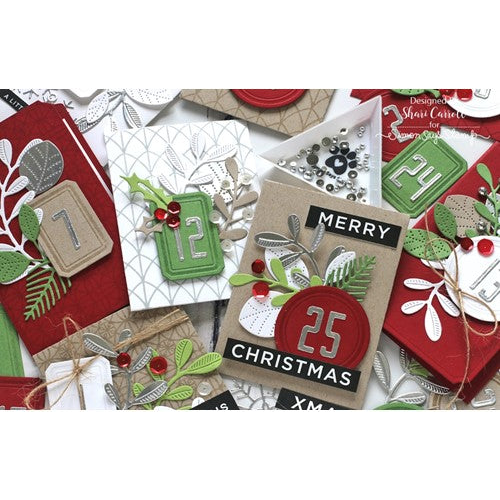 Foundational series. Interchangeable with with Specimen 665930 and Postale 665927 dies. Thinlits create dazzling detailed shapes for more creative cardmaking and papercrafting projects. These wafer-thin chemical-etched die sets are designed to cut, emboss or stencil a single sheet of cardstock, paper, metallic foil or vellum. Use them for enhanced intricacy and to add a special touch of inspiration to all your projects. Compatible with the most cutting machines. This set includes a handy storage envelope. For easy identification, trim off the packaging front flap, keep and slip into the envelope. Curated by Tim Holtz. Includes 45 dies approximately 6 x 5 to 0.125 x 0.5 inches. Includes 3 each of the numbers. Coin envelope is approximately 3.75 x 2.875 inches when assembled, largest card is approximately 2.125 x 3.125 inches.