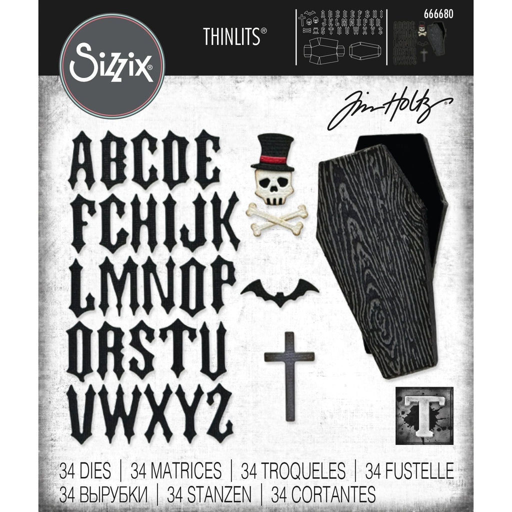 The Vault Coffin Box die set from Tim Holtz is a fantastic addition for any Halloween enthusiast. This die set includes a coffin box design, complete with spooky embellishments such as a skull and crossbones adorned with a quirky top hat, a bat, a cross, and a gothic alphabet for a touch of eerie elegance. Ideal for creating unique and spooky treat boxes, this set is perfect for presenting Halloween goodies as gifts or for adding a special touch to party favors.