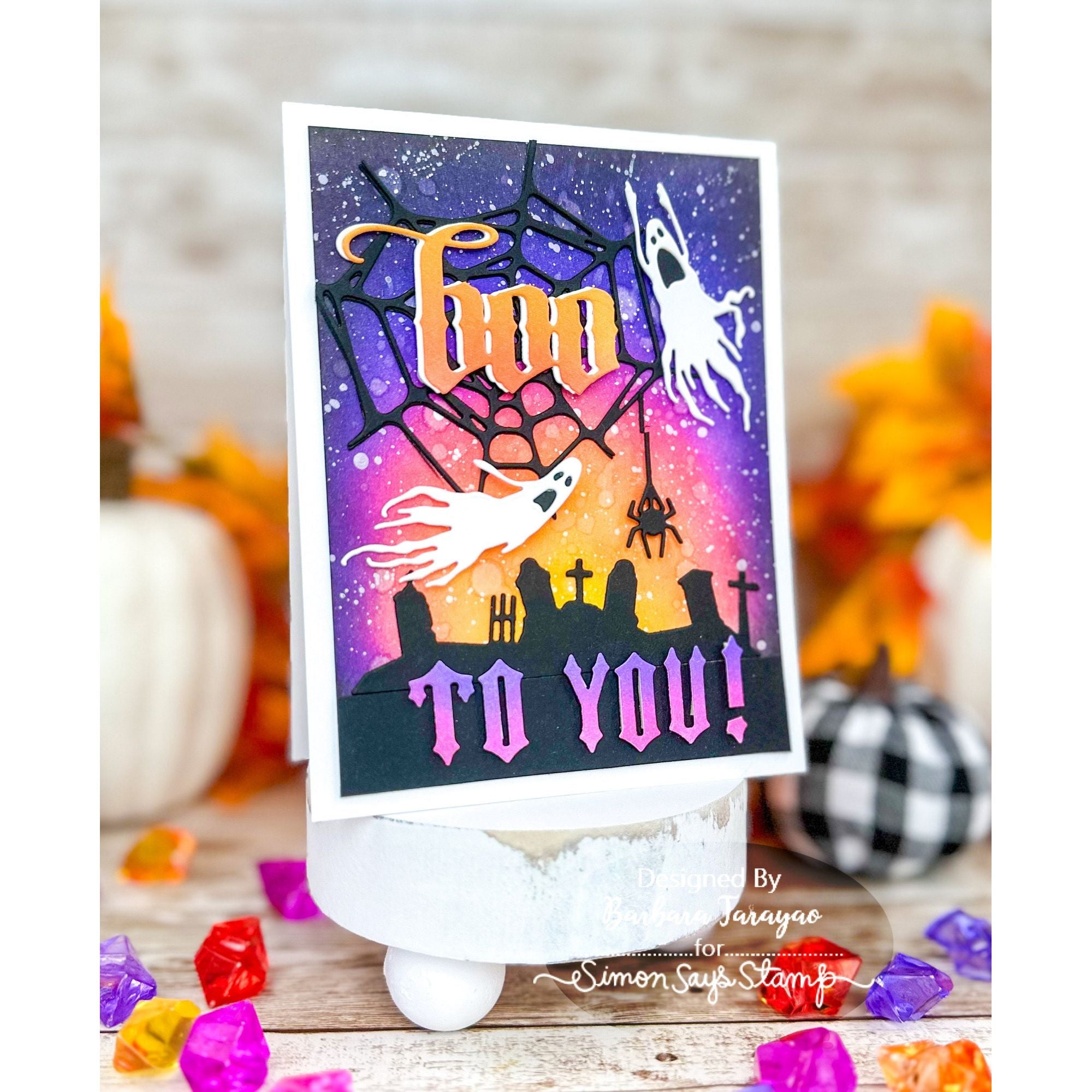 Step into the shadows and let your creativity roam free with Vault Fright Night by Tim Holtz! This die set features wickedly detailed elements including ghosts, eerie graveyard scenes, spooky clouds, a crescent moon, a spider hanging from a web, and gnarled branches. Vault Fright Night opens a realm of endless possibilities, perfect for crafting hauntingly beautiful projects that capture the essence of Halloween. Unleash your imagination and bring a touch of the supernatural to your creative endeavors!