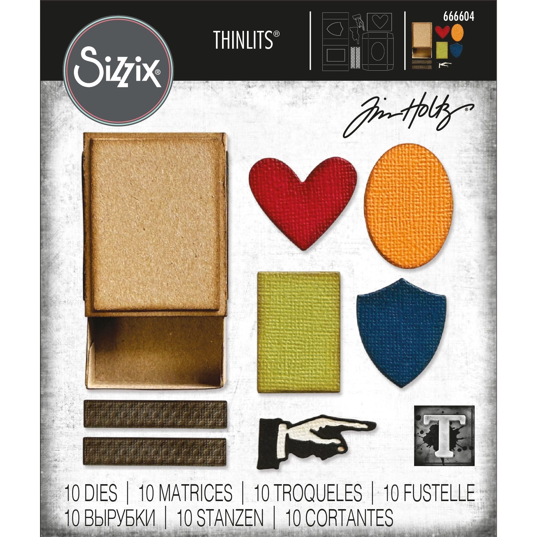 Experience the enchantment of miniature crafting with the Tim Holtz Sizzix Vault Matchbox Thinlits Dies. Transform ordinary matchboxes into extraordinary creations with this versatile set. It includes various shapes such as a heart, shield, oval, rectangle, as well as striking surfaces for the box sides and a pointing finger, allowing you to decorate your matchboxes in endless ways.