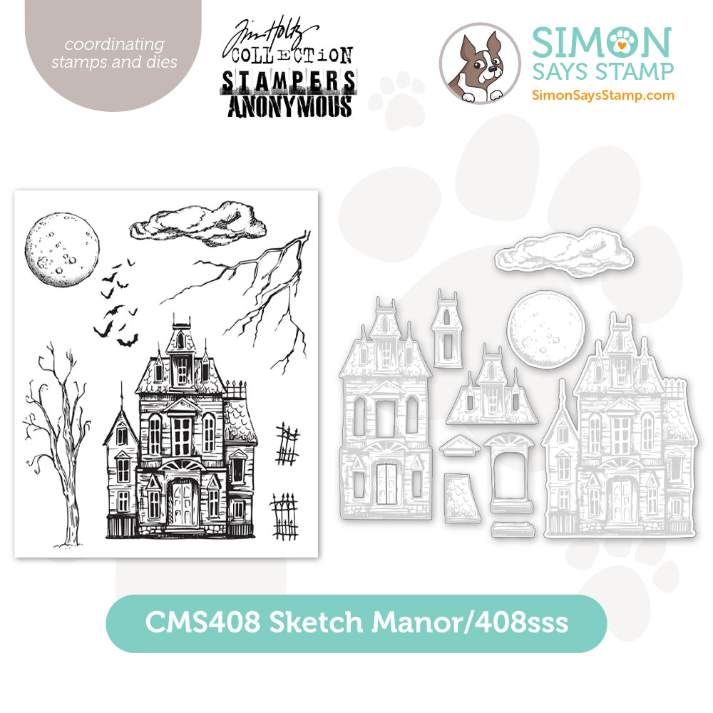 This bundle includes the Tim Holtz Sketch Manor Cling Rubber Stamps and the Simon Says Stamp Sketch Manor coordinating dies.
