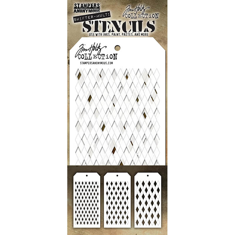 These tag shaped stencils can be used to layer with inks, stains, paints, and more! 3 Stencils, each measures approximately 4.125 x 8.5 inches.