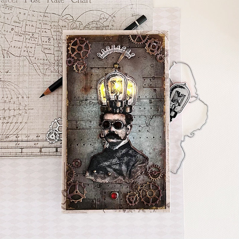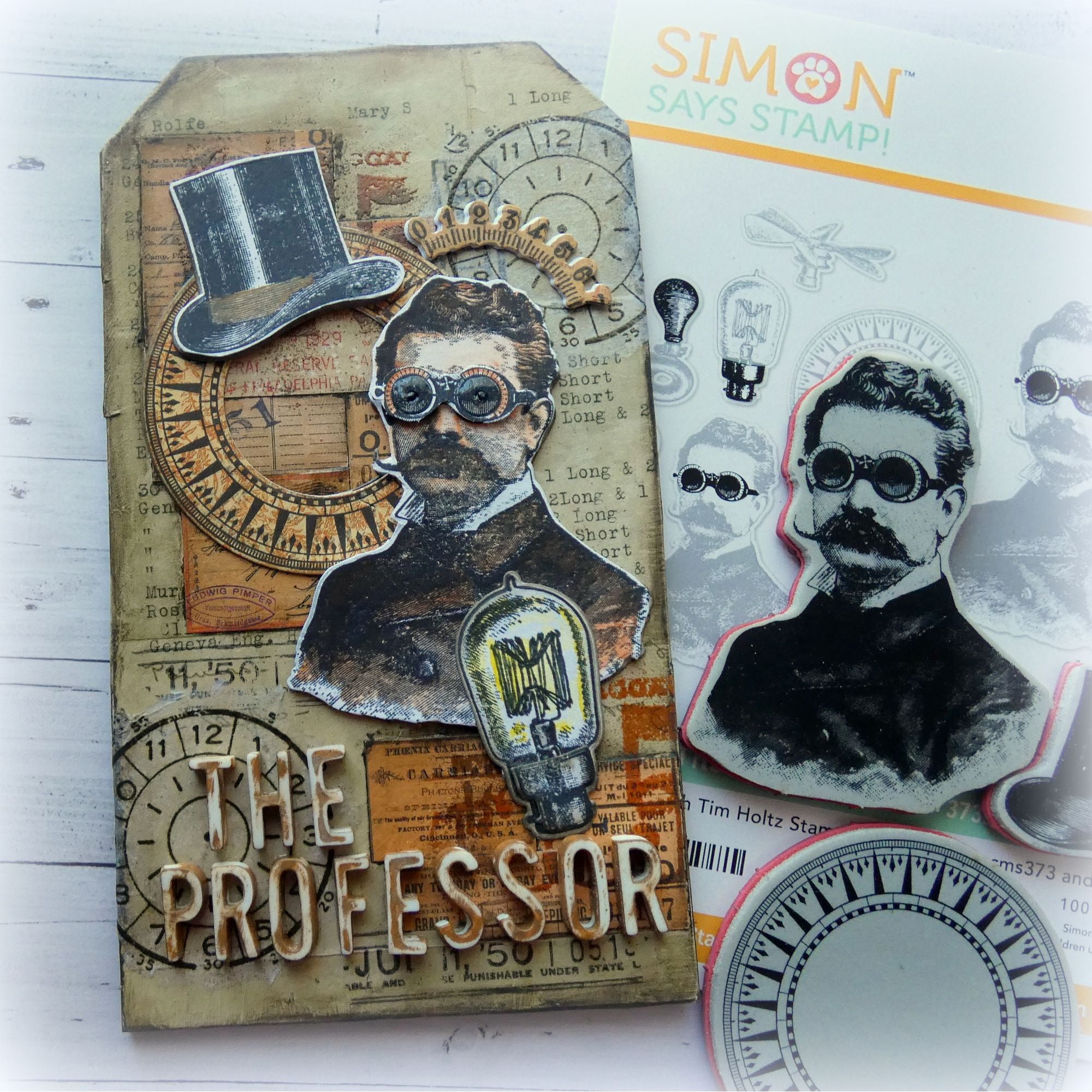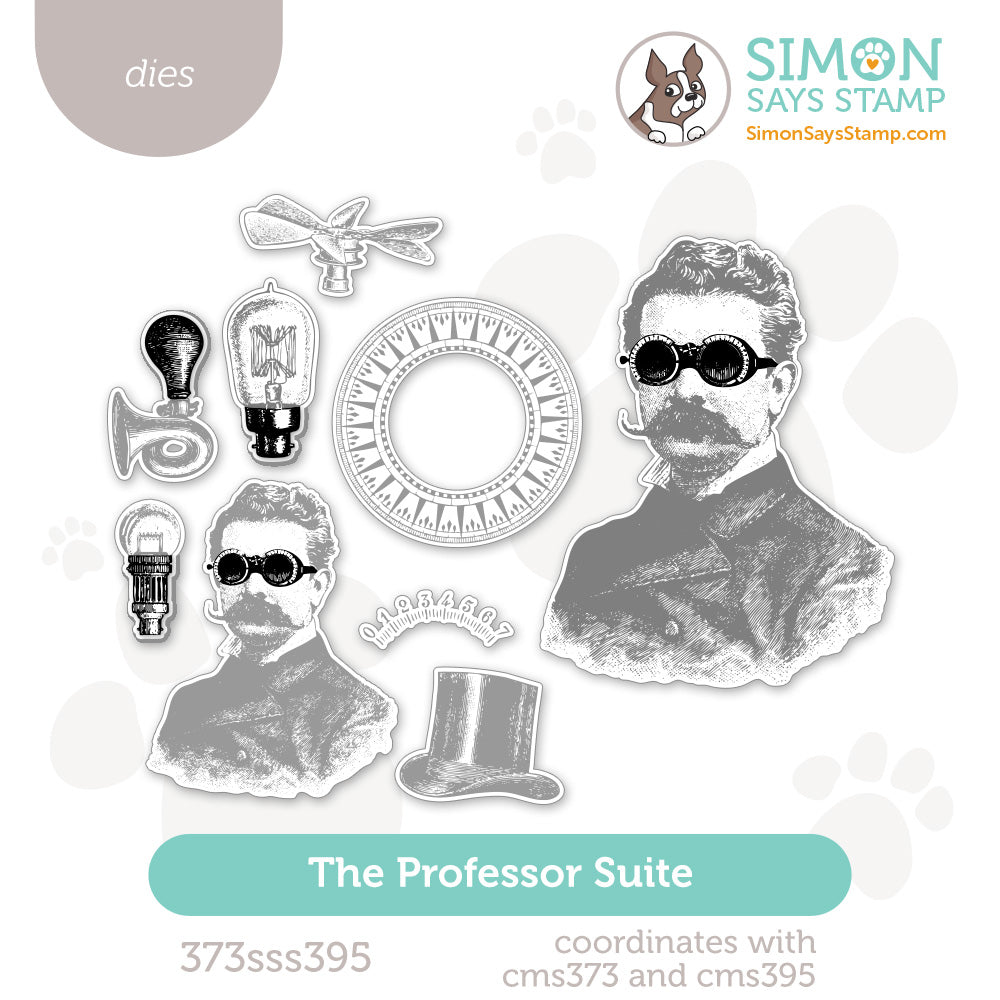 This bundle includes the Tim Holtz The Professor Cling Rubber Stamps, the Tim Holtz The Professor 2 Cling Rubber Stamps, and the Simon Says Stamp The Professor Suite coordinating dies.