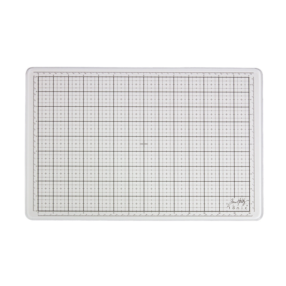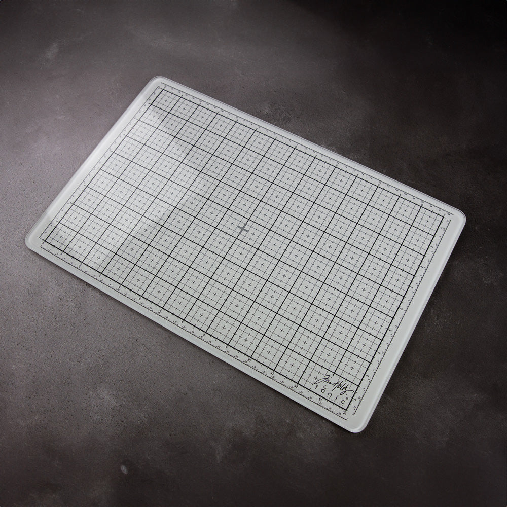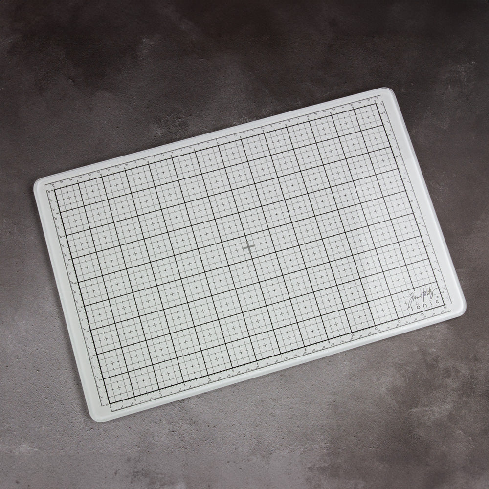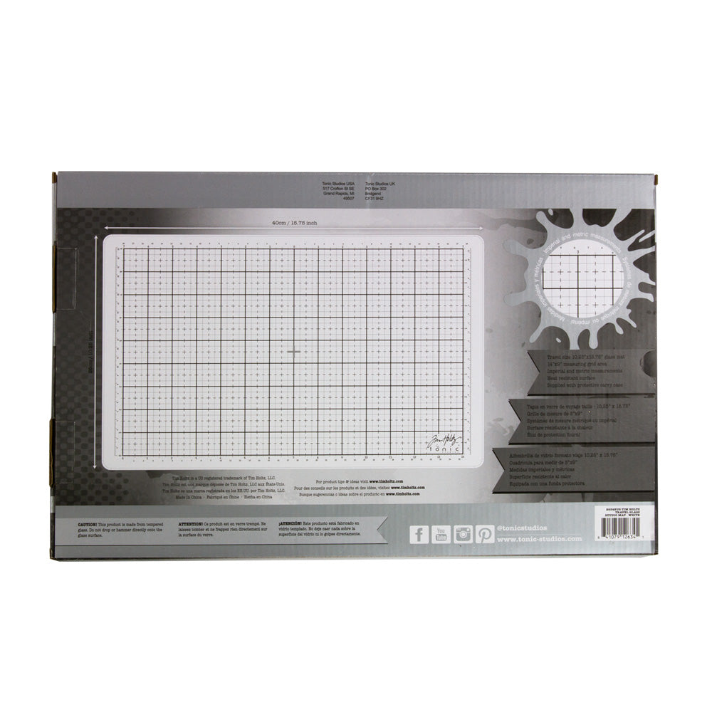 Discover the ultimate portable surface - the Tim Holtz® Travel Glass Studio Mat, now available in a sleek white design! With a 15.75 x 10.25 inch work area and a 0.25 inch measuring grid, creating on-the-go has never been easier. This must-have mat also includes a convenient 14 x 8 inch measuring grid for precise alignment. Use it alongside the new ruler 4634e and travel media surface mat 4500e for optimal results. Made with tempered glass, this scratch and heat-resistant mat comes with a protective carry sleeve. Don't miss out on this new release for 2024!