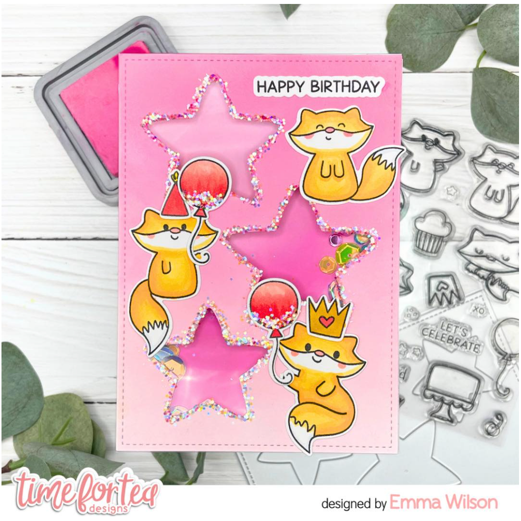 Explore the Time for Tea Designs Birthday Fox Coordinating Dies, a versatile set designed to perfectly complement the Birthday Fox Clear Stamps. With these coordinating dies, you can effortlessly cut out charming images of four foxes, festive party hats, vibrant balloons, delectable cakes and cupcakes, candles, cherries, and a host of other delightful elements. Let your creativity run wild and create adorable birthday-themed projects with ease!