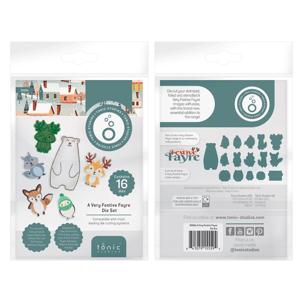 Enhance your festive creations with these coordinating dies that perfectly complement the A Very Festive Fayre Clear Stamps and Stencils (5561e and 5558e, sold separately). Featuring a charming collection of a polar bear, reindeer, squirrel, fox, and penguin, this set includes 16 exquisite dies that are compatible with most leading die cutting systems. The pack measures approximately 4.7 x 7.2, providing a luxurious and elegant touch to your crafting experience.