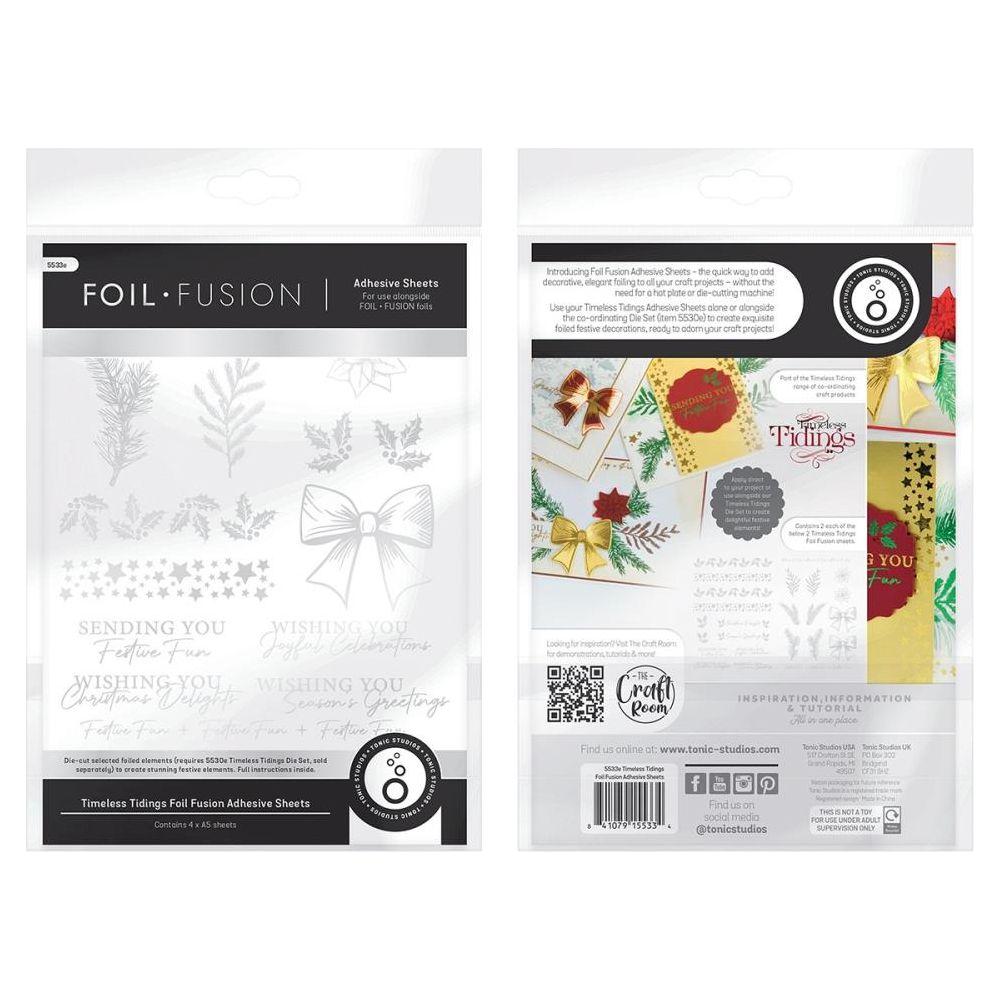 The Tonic Timeless Tiding Foil Fusion Adhesive Sheet is part of the elegantly designed Timeless Tidings Collection. This collection caters to traditional crafters who appreciate nostalgic imagery, and can be enhanced with the coordinating Die Set (item 5530e). With four A5 sheets and a total of 48 elements, these adhesive sheets can be combined with Foil Fusion Foils to create exquisite, gilded designs. Some elements can even be die-cut using the Timeless Tidings Die Set for a seamless finish. Detailed instructions are included for effortless use.