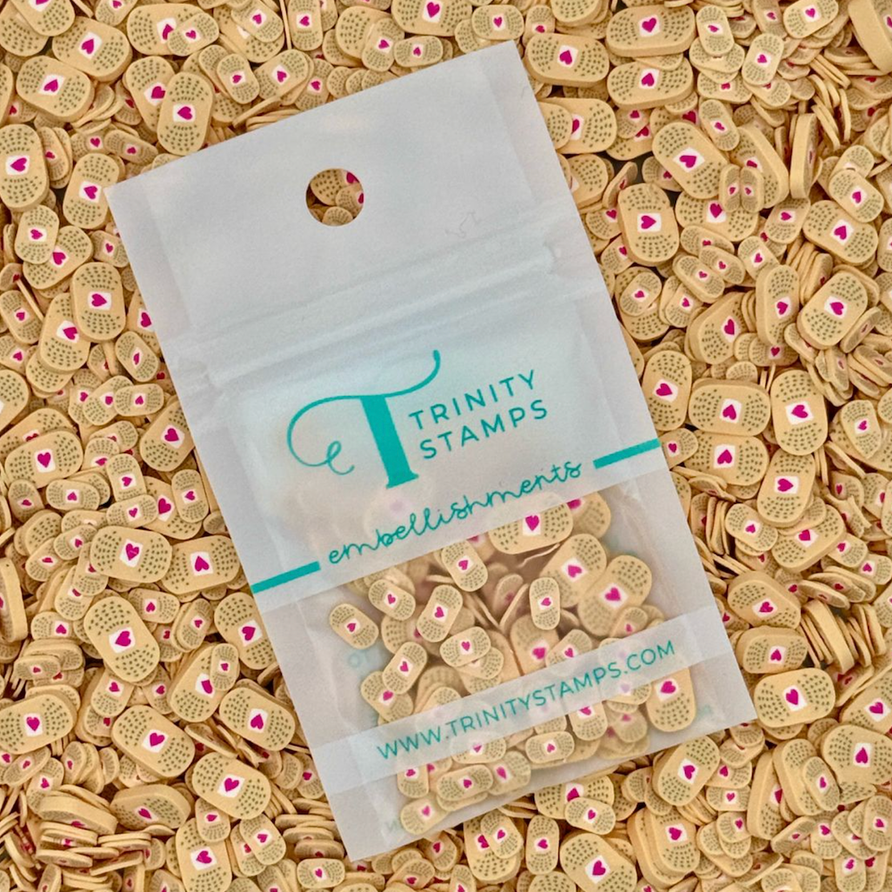 The Trinity Stamps Boo Boo Buddies Clay Embellishment Mix features adorable mini bandage clay pieces, perfect for adding a whimsical touch to get-well cards, medical-themed projects, or shaker elements. A sweet way to send healing hugs!