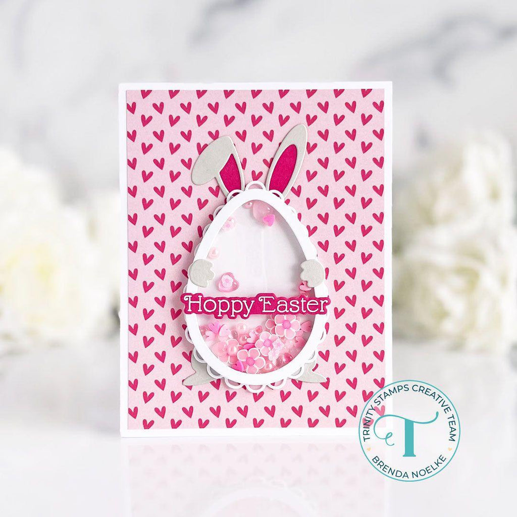 This die set includes a total of 8 dies that will create the illusion of a bunny behind an egg. Use the egg and frame to make a shaker with the bunny pieces or without.