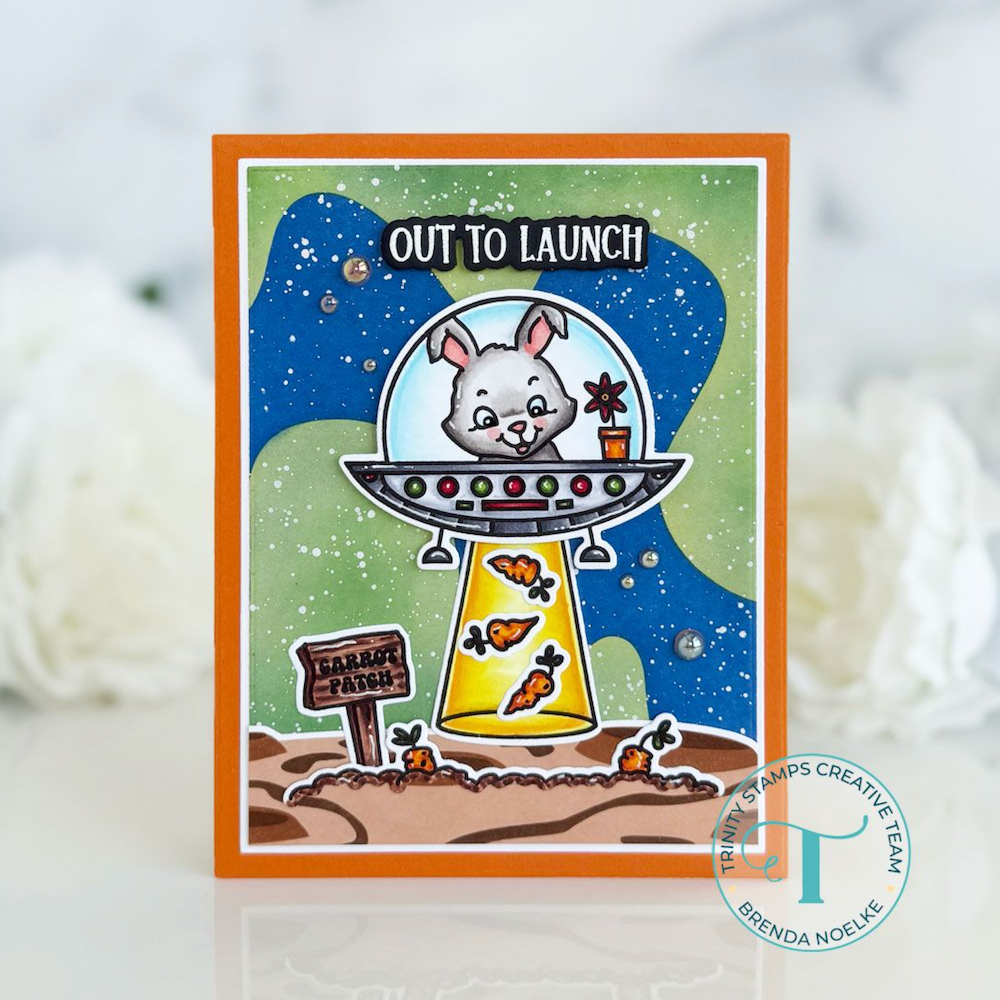 The Trinity Stamps Cosmic Carrots Stamp and Die Bundle brings a fun and whimsical twist to outer space crafting. Featuring bunny astronauts, carrot rockets, UFOs, constellations, and garden-themed space elements, this set is perfect for creating imaginative, lighthearted scenes. The coordinating die set cuts out all images and sentiments with precision, making it easy to add dimension to your cards, tags, and cosmic-themed projects. Compatible with most standard die cutting machines.