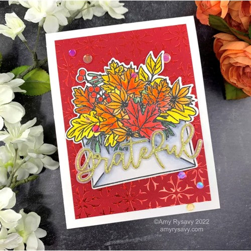 This 4 x 6 inch clear stamp set contains one large focal image of a botanical filled envelope and a