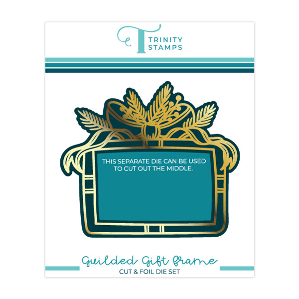 This Trinity Stamps Gilded Gift Frame Cut And Foil Die Set is your perfect gift package! With its quick and easy crafting of a foil stamp and two die-cut designs — measuring 4.7 x 4 inches — your card will become a beautiful and unique present in no time.