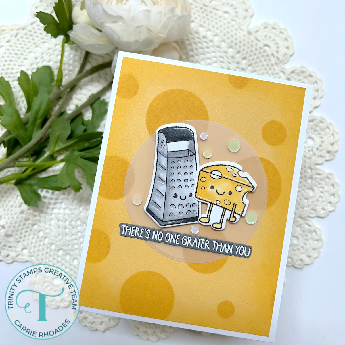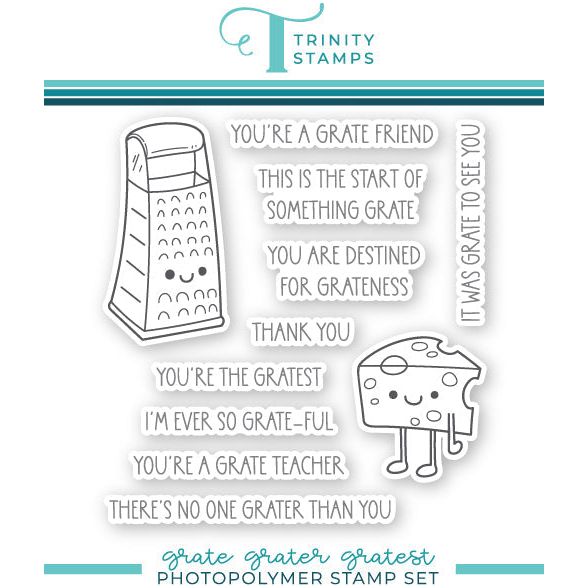 Discover endless cheesy fun with the 4 x 4 inch Grate, Grater, Gratest Clear Stamp Set. Create adorable cheese-themed designs with the charming cheese wedge and grater characters. This versatile set also includes 9 clever sentiments. Take your crafting to the next level with added cheesy goodness! Coordinating dies available (tmd-c306, sold separately).