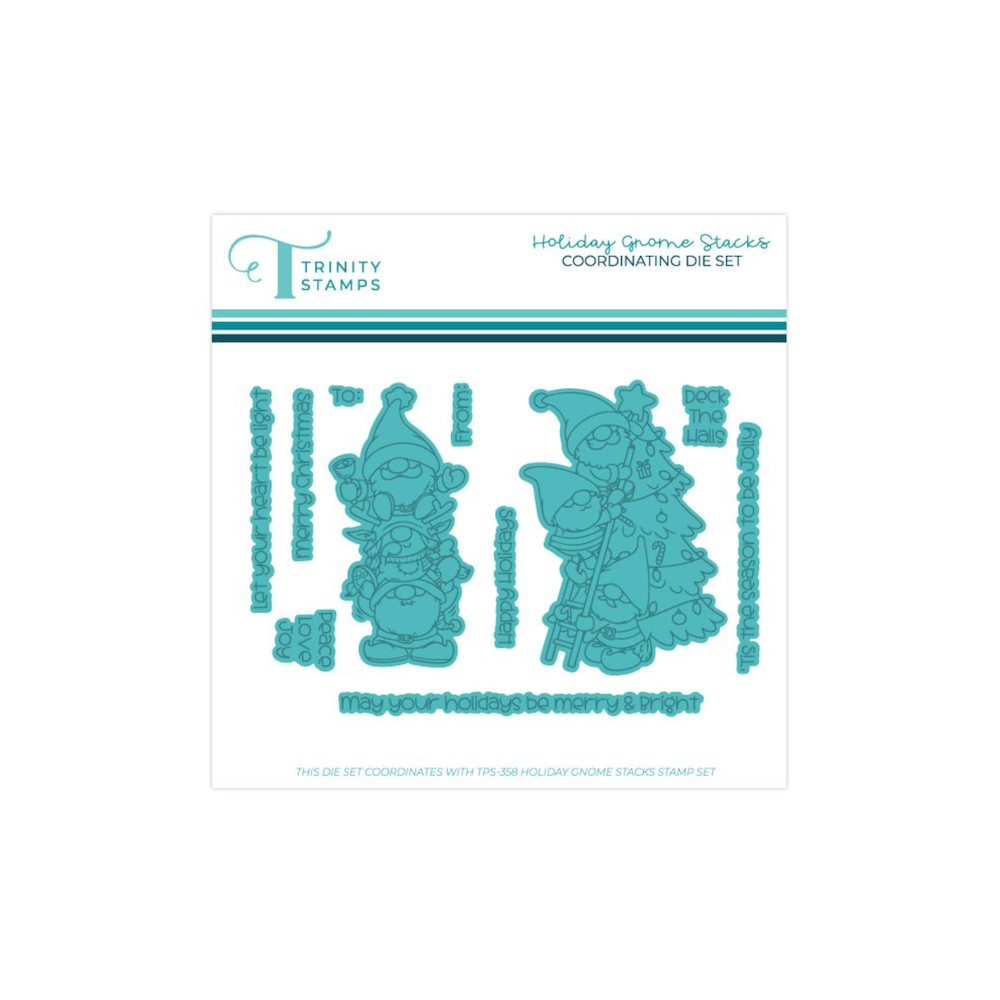 The Trinity Stamps Holiday Gnome Stacks Die Set includes 11 dies that perfectly cut out all the images from the coordinating 4 x 8 inch Holiday Gnome Stacks stamp set (sold separately). This set makes it easy to create festive, precision-cut gnome designs for your holiday projects.