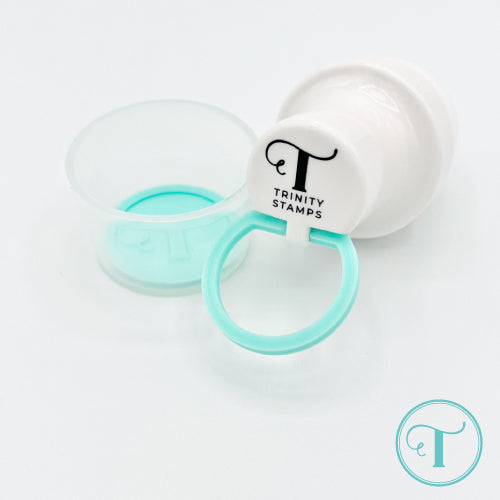 Trinity Stamps ink blending brushes are designed for convenience: their soft, dense white bristles, flat top handles, and included lids make them easy to use and store. Additionally, the provided clip-on rings and round discs allow users to quickly and easily assign brushes to particular color families. Clipping either side of the ring into the hole at the top of the brush results in a secure fit, while a flat disk can be easily stored within the brush lid.