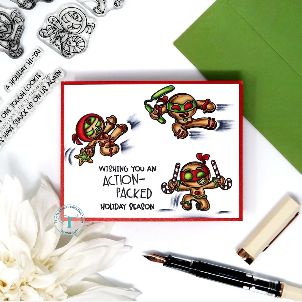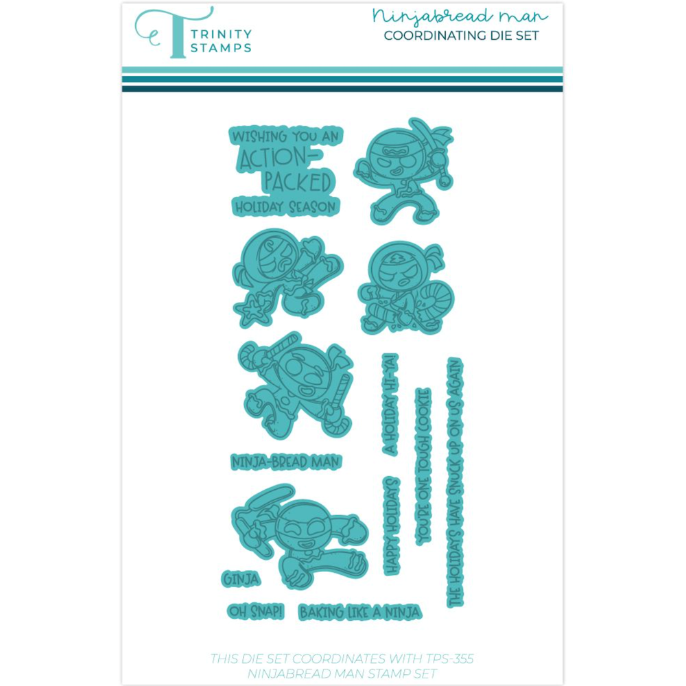 The Trinity Stamps Ninja Bread Man Die Set includes 14 dies that perfectly cut out all the images from the coordinating 4 x 8 inch Ninja Bread Man stamp set (sold separately). This set makes it easy to create fun, precision-cut Ninja cookie characters for your holiday projects.