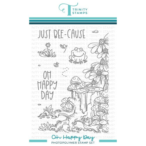 This 11 piece 4 x 6 inch clear stamp set features a large whimsical tree stump with mushrooms and florals perfect for scene building. Add the adorable frog, snail, or bee images to the scene to make it complete. The set also contains two sentiments.