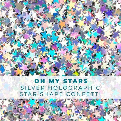 This twinkle star mix is full of 5mm silver stars that have a holographic finish. It looks like the back of a compact disk.