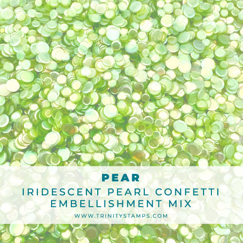 With its elegant iridescent finish, the Trinity Stamps Pear Confetti is an enchanting addition to your crafting arsenal. Whether you're creating handmade cards, scrapbooking layouts, party decorations, or any other artistic endeavor, this confetti mix will add a touch of magic and sophistication to your creations. Let your imagination dance and sparkle with the Trinity Stamps Pear Confetti Embellishment Box.