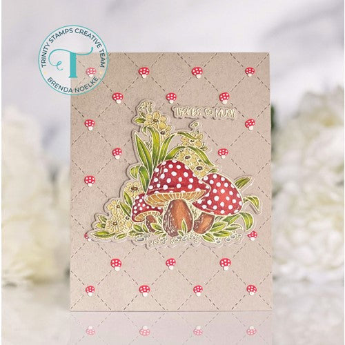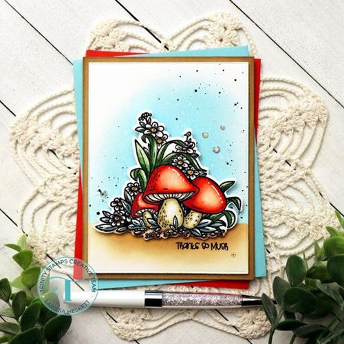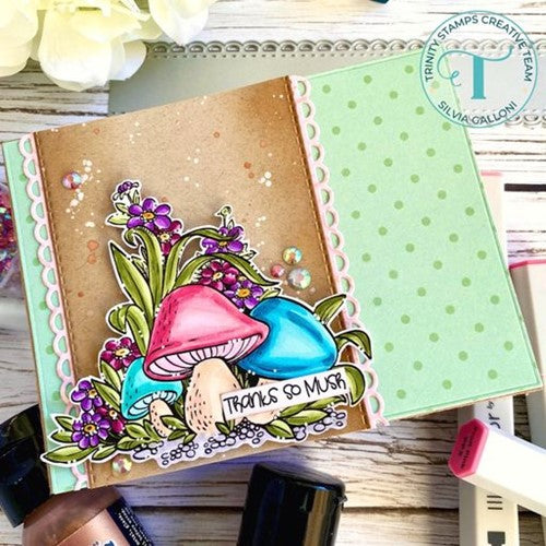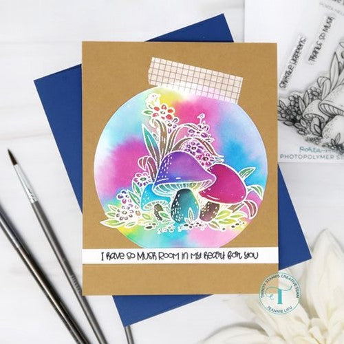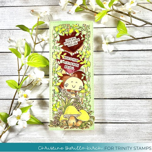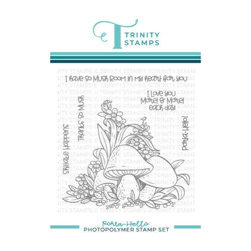 Porta-Hello features a large focal image of beautifully illustrated mushrooms and foliage. There are additionally 5 different coordinating sentiments to help complete your design.