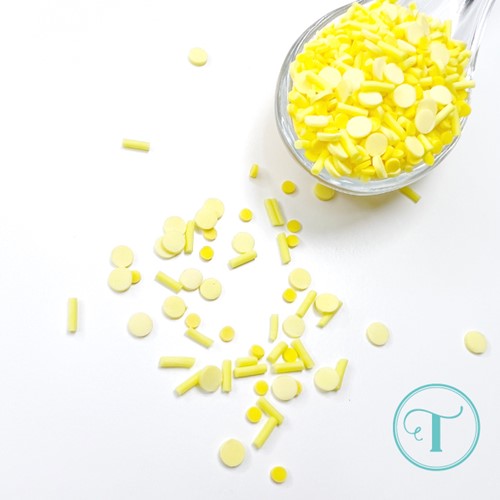 These fun paper confection sprinkles look just like the real thing! Made out of polymer clay, they are lightweight and easy to use. Simply adhere with your favorite adhesive.