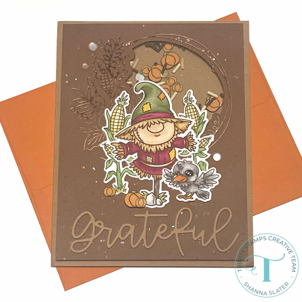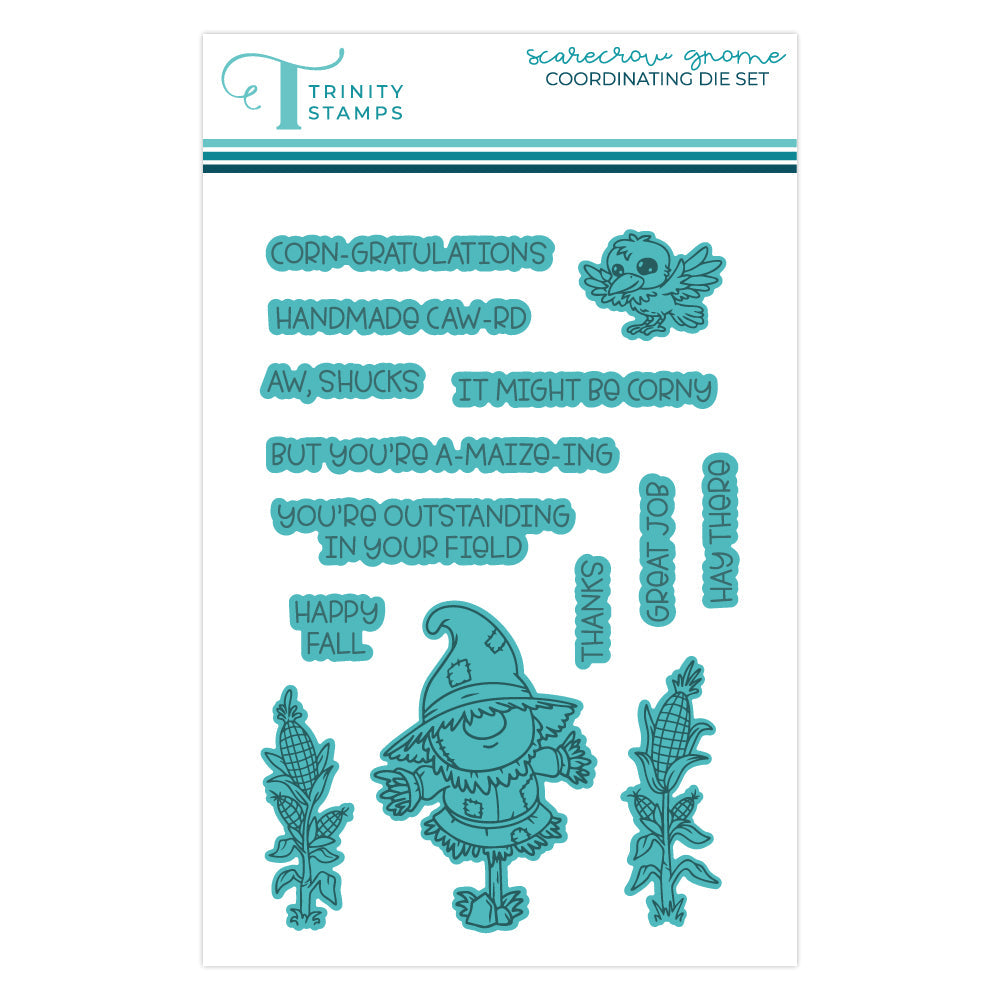 This 14-piece die set cuts out all the images and sentiments in the 4 x 6 inch Scarecrow Gnome stamp set, making it easy to bring your adorable scarecrow creations to life!