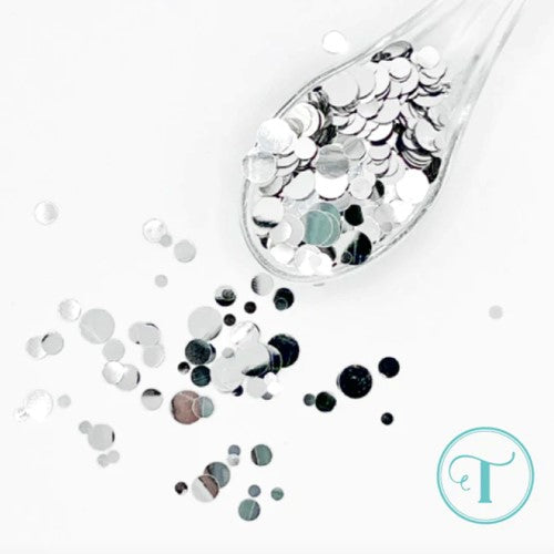This silver metallic confetti mix comes in several different sizes and has a very low profile perfect for thin shaker cards or no-bulk accents. 1 tsp packaged in a plastic storage box. Storage box measures approximately 2 x 1 x 0.5 inch.