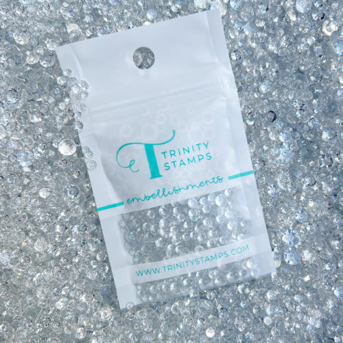 This mix of flat-back resin rhinestones includes four sizes (3mm, 4mm, 5mm, 6mm) with transparent exterior and dense, extra-fine silver holographic interior. 2 Teaspoons in total volume, packaged in a resealable zip top bag.